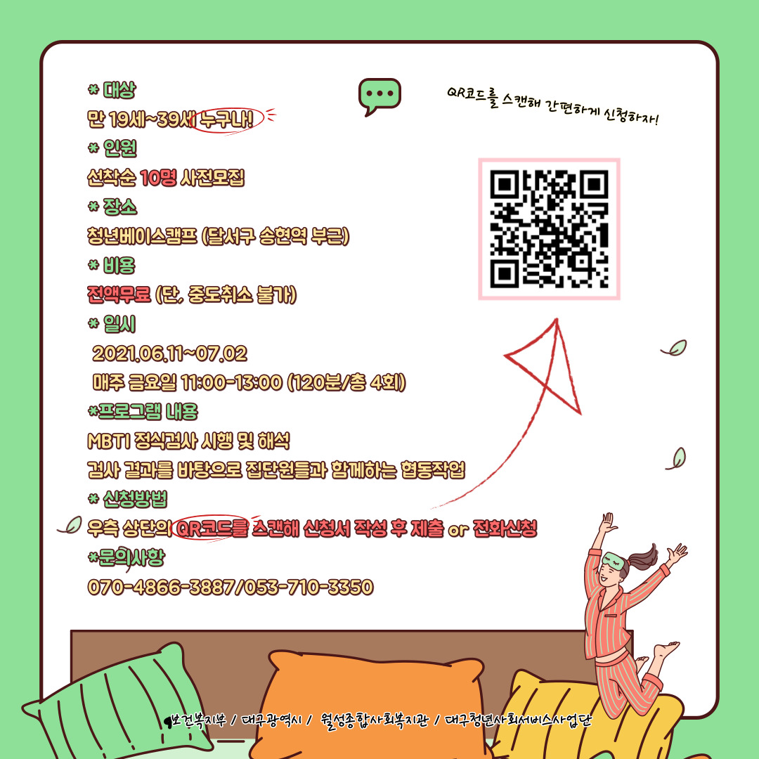 *신청방법:포스터의 QR코드 스캔 후 신청서 작성 및 제출(상단의 신청링크로 접속가능) or 아래번호로 전화신청