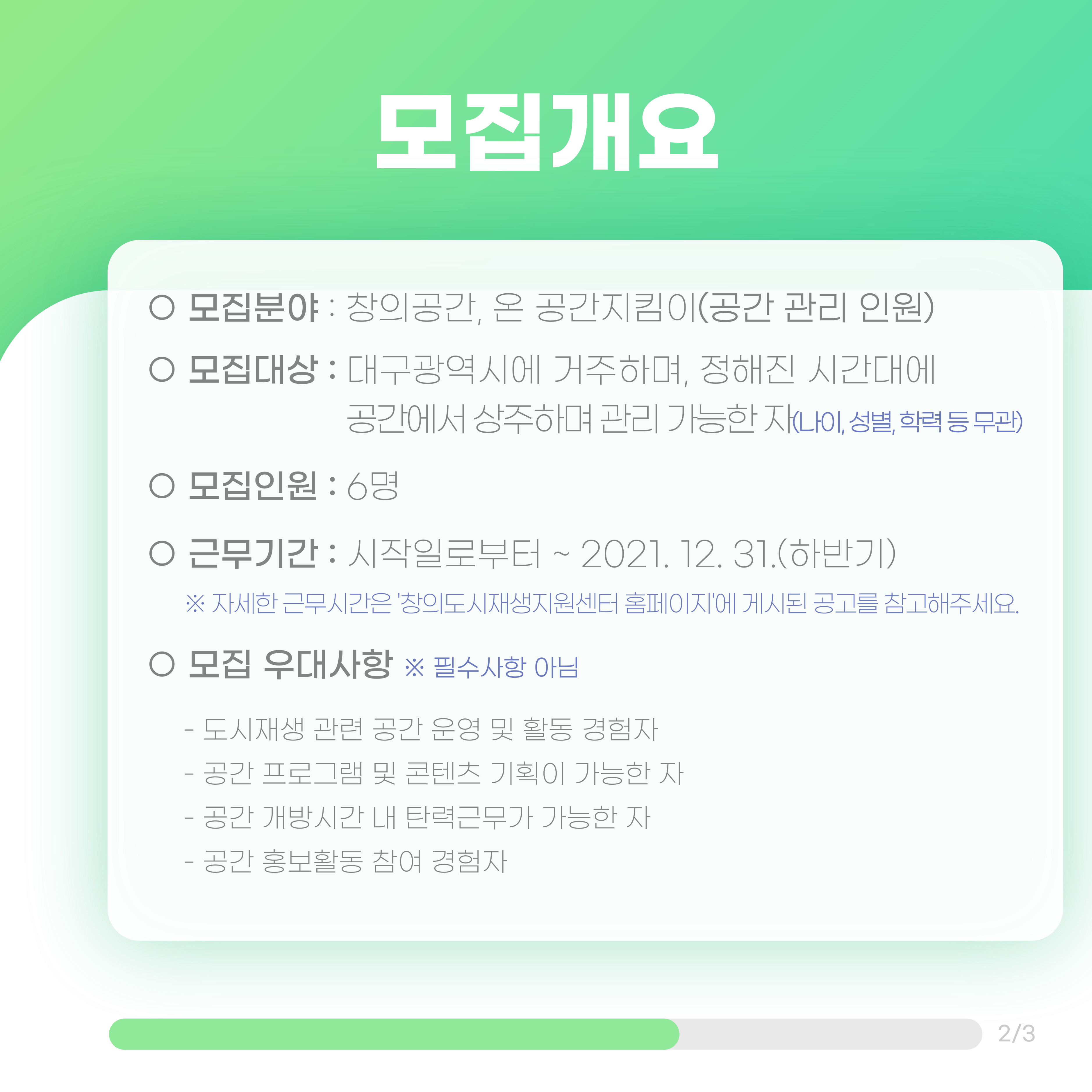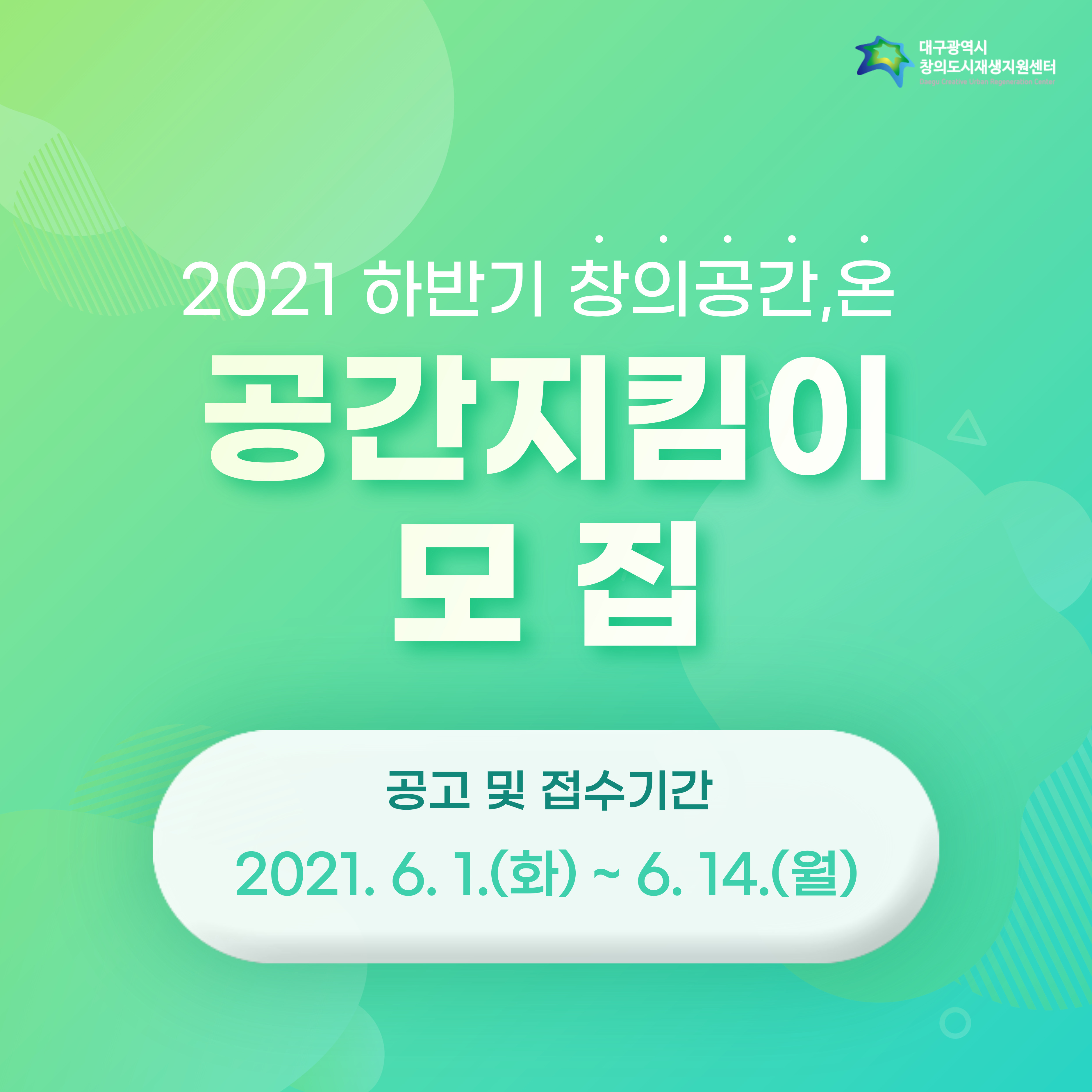 2021 하반기 창의공간,온 공간지킴이 모집작성자 : 이미선 작성일 : 21-06-07