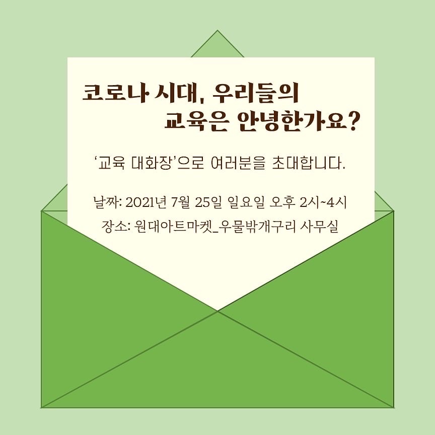 코로나19의 지속으로 교육은 많은 변화를 마주했습니다. 교육의 변화에 대한 경험과 생각을 편하게 나누고자 ‘교육 대화장’을 기획했습니다.