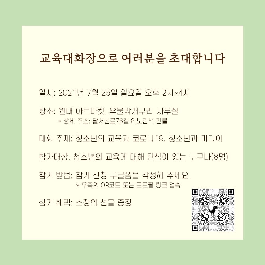 • 참가 대상: 청소년의 교육에 대해 관심이 있는 누구나