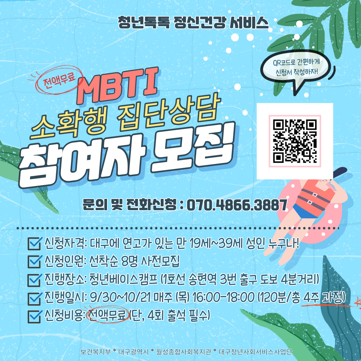 *신청방법: 신청서 작성 시 자동으로 신청완료! (상단 링크 클릭/포스터의 QR코드 스캔) or 전화신청 (070-4866-3887)