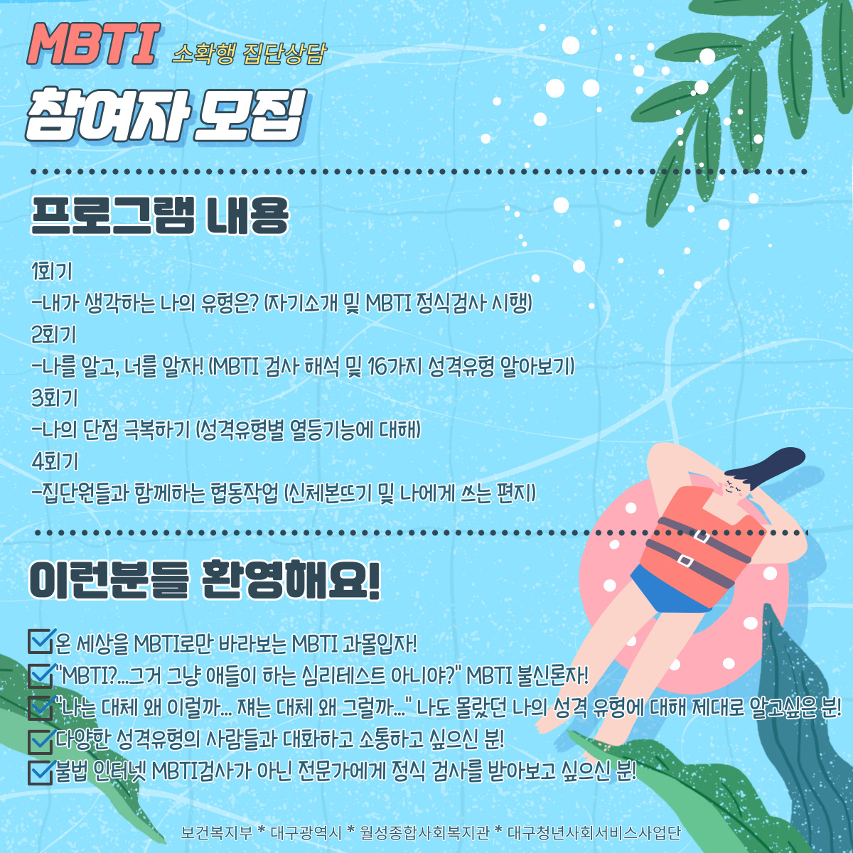 [청년톡톡] 정신건강 서비스 'MBTI 소확행 집단상담' 프로그램 이용자를 모집합니다!