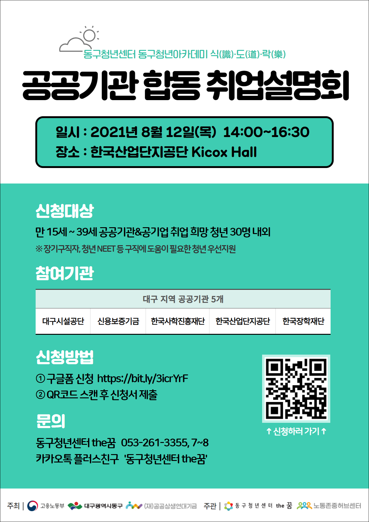 2021 '공공기관 합동 취업설명회' 2차 참여자 모집!작성자 : 박소진 작성일 : 21-08-02