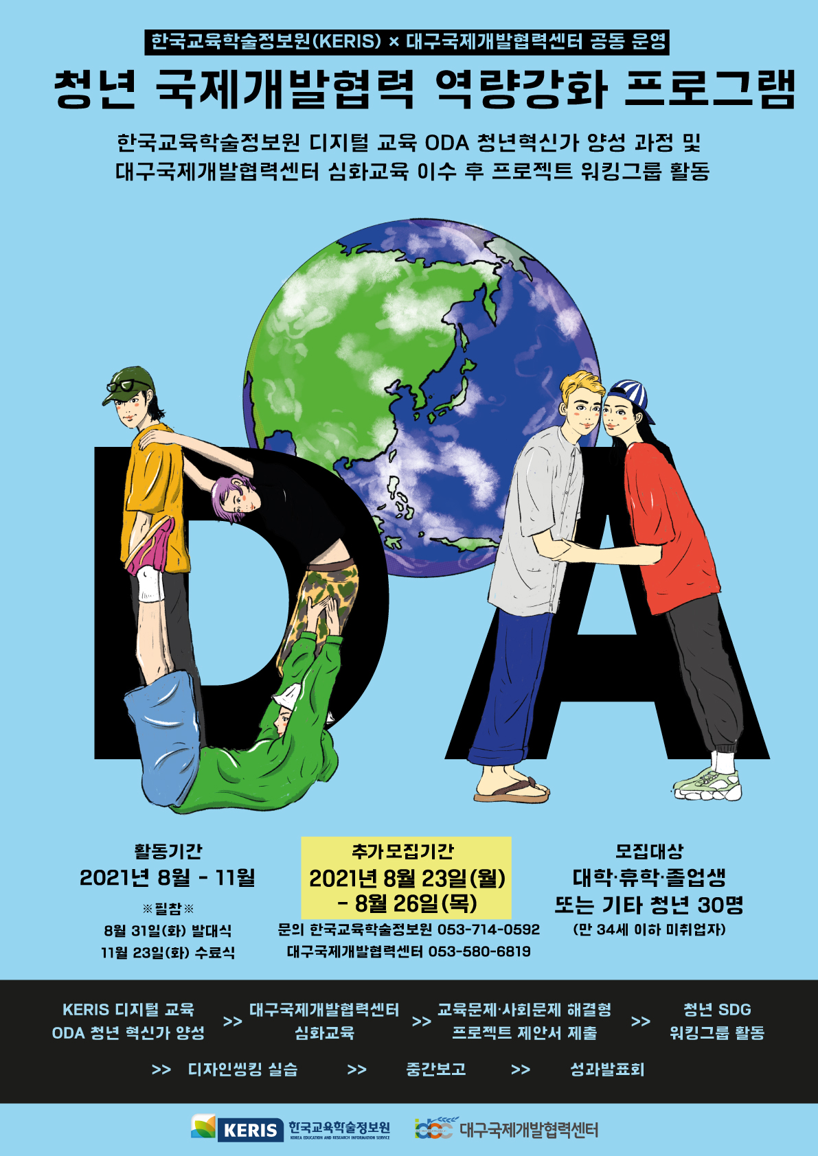[한국교육학술정보원 x 대구국제개발협력센터] 청년 국제개발협력 역량강화 프로그램 추가모집작성자 : 박기웅 작성일 : 21-08-06