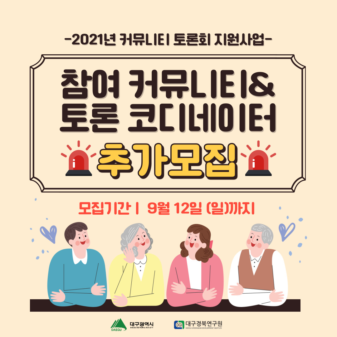 참여커뮤니티와 토론코디네이터를 아래와 같이 추가모집합니다.
