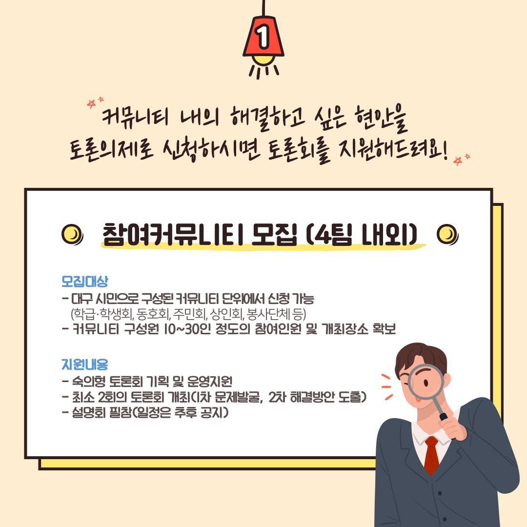 - 대구시민으로 구성된 커뮤니티 단위에서 신청 가능