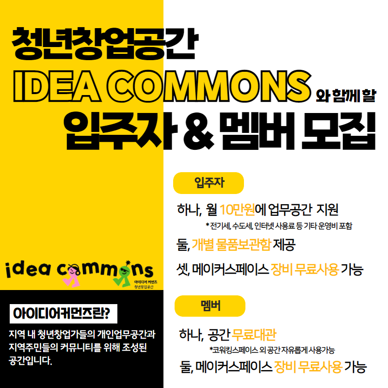 청년창업공간 아이디어커먼즈는 청년창업가들의 개인업무공간과