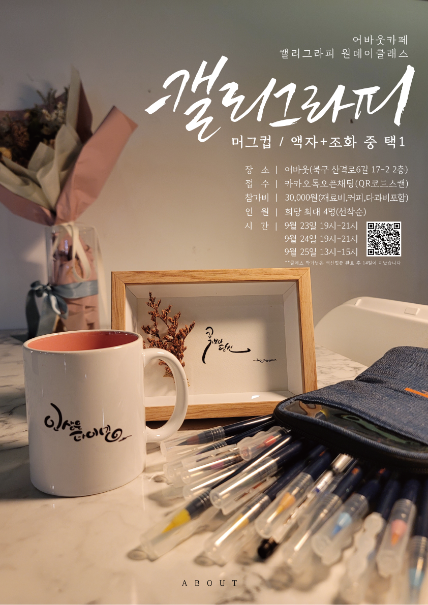 캘리그라피 원데이클래스(머그컵/액자)작성자 : 제갈동호 작성일 : 21-09-19