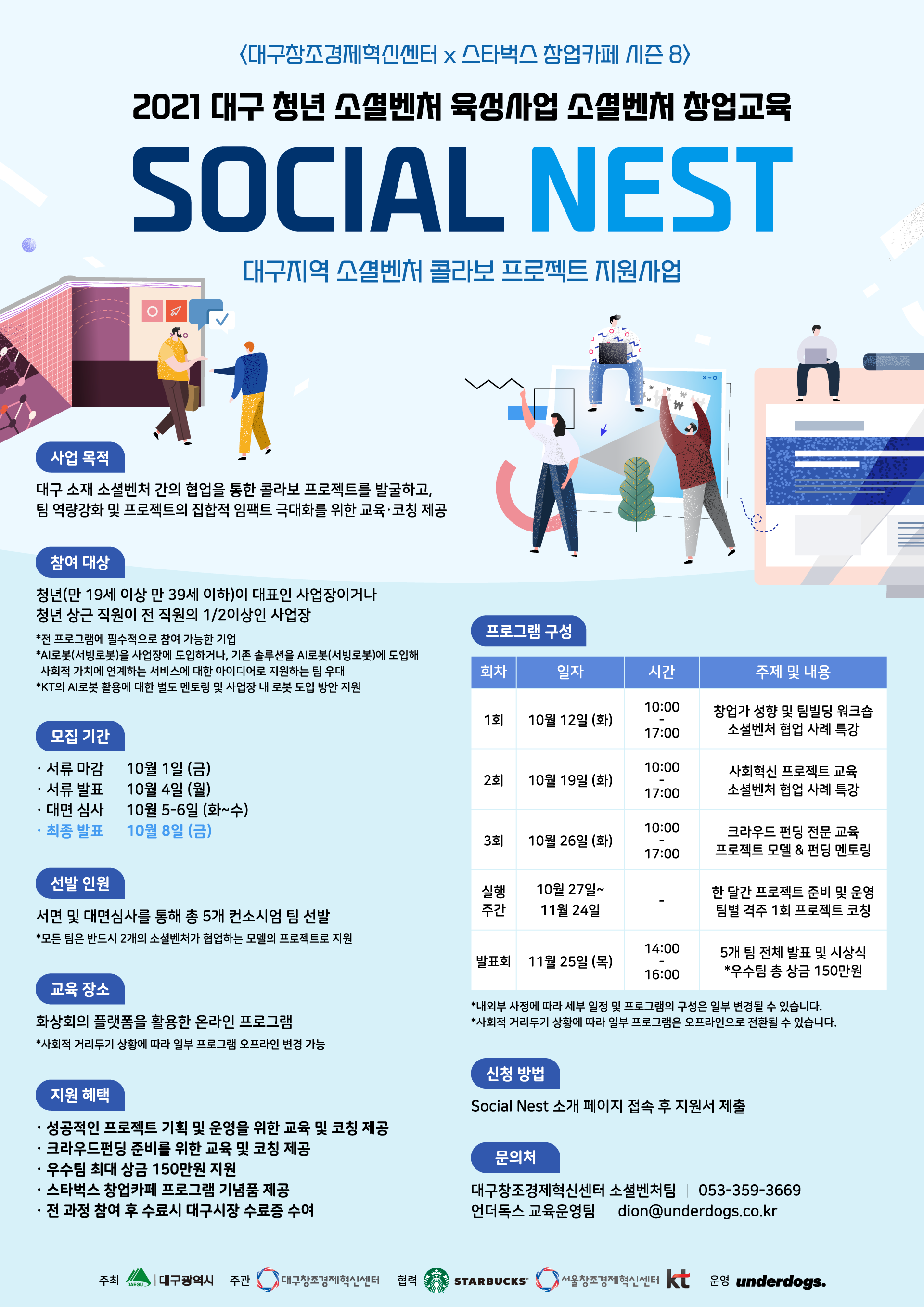 대구 내 소재의 7년 차 미만의 청년(대표자 기준, 만 39세 미만) 소셜벤처 창업팀
