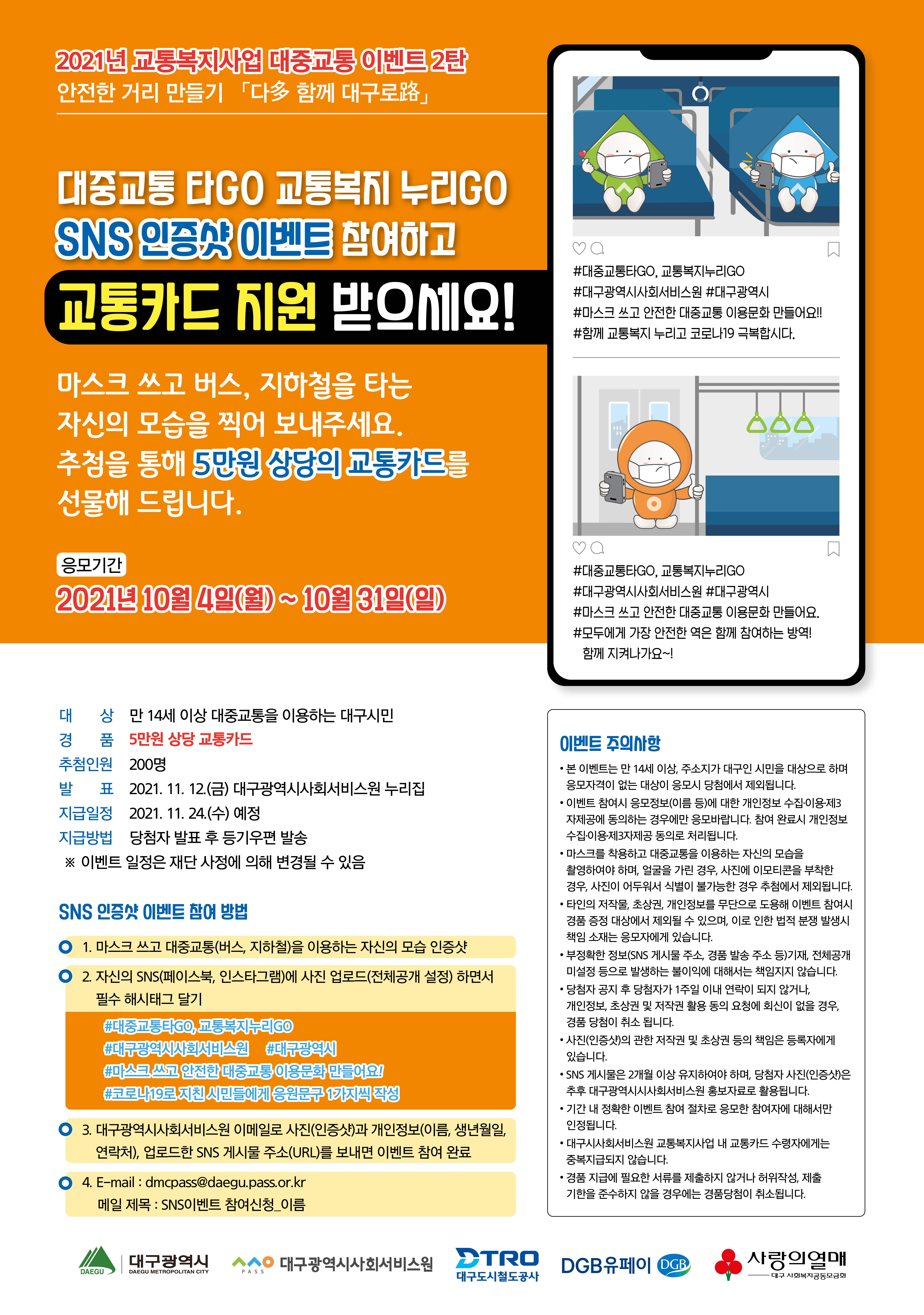 [대구광역시사회서비스원] 2021년 교통복지사업 대중교통 이벤트 2탄