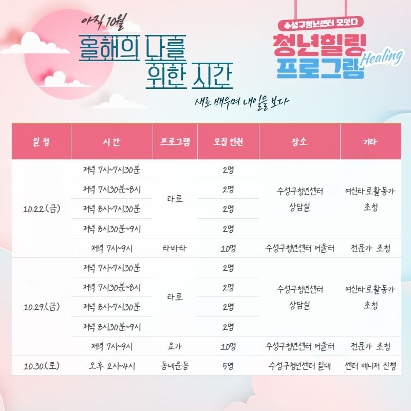 * 프로그램 : 청년힐링 프로그램 (10월)