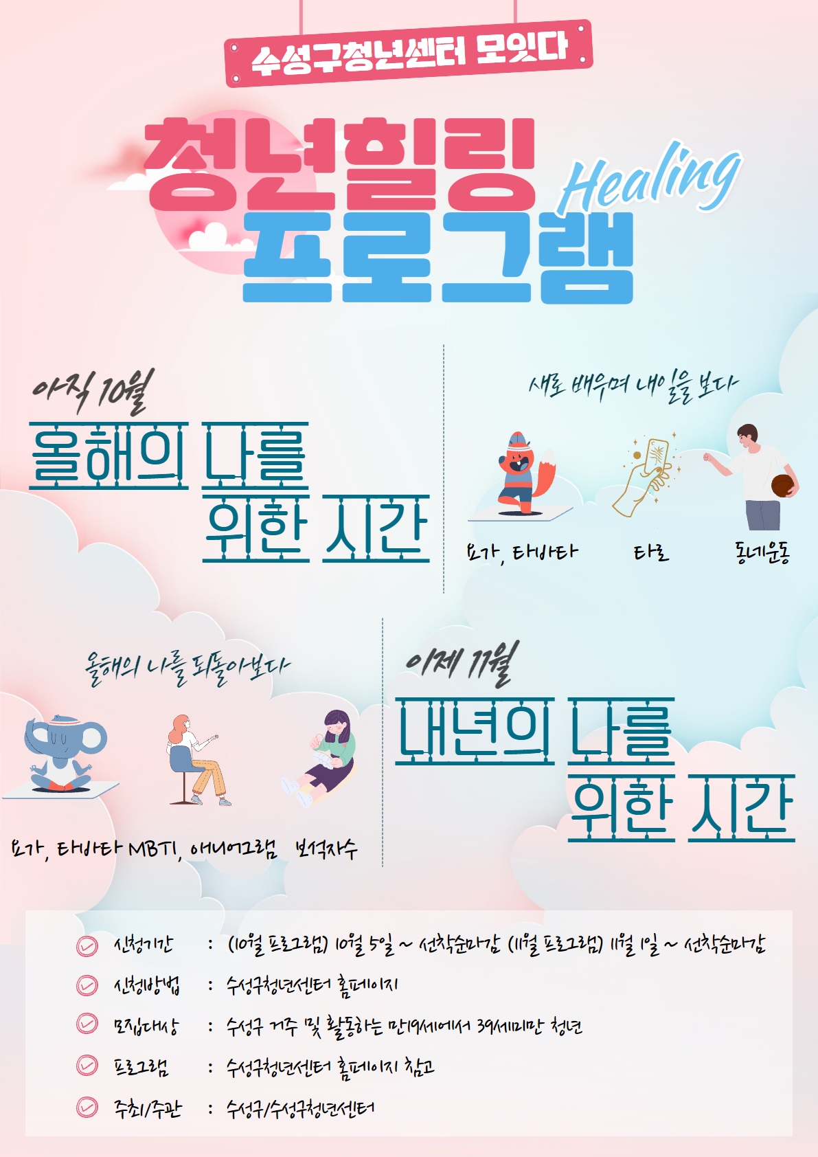 힐링 프로그램이 수성구청년센터에서 진행됩니다.
