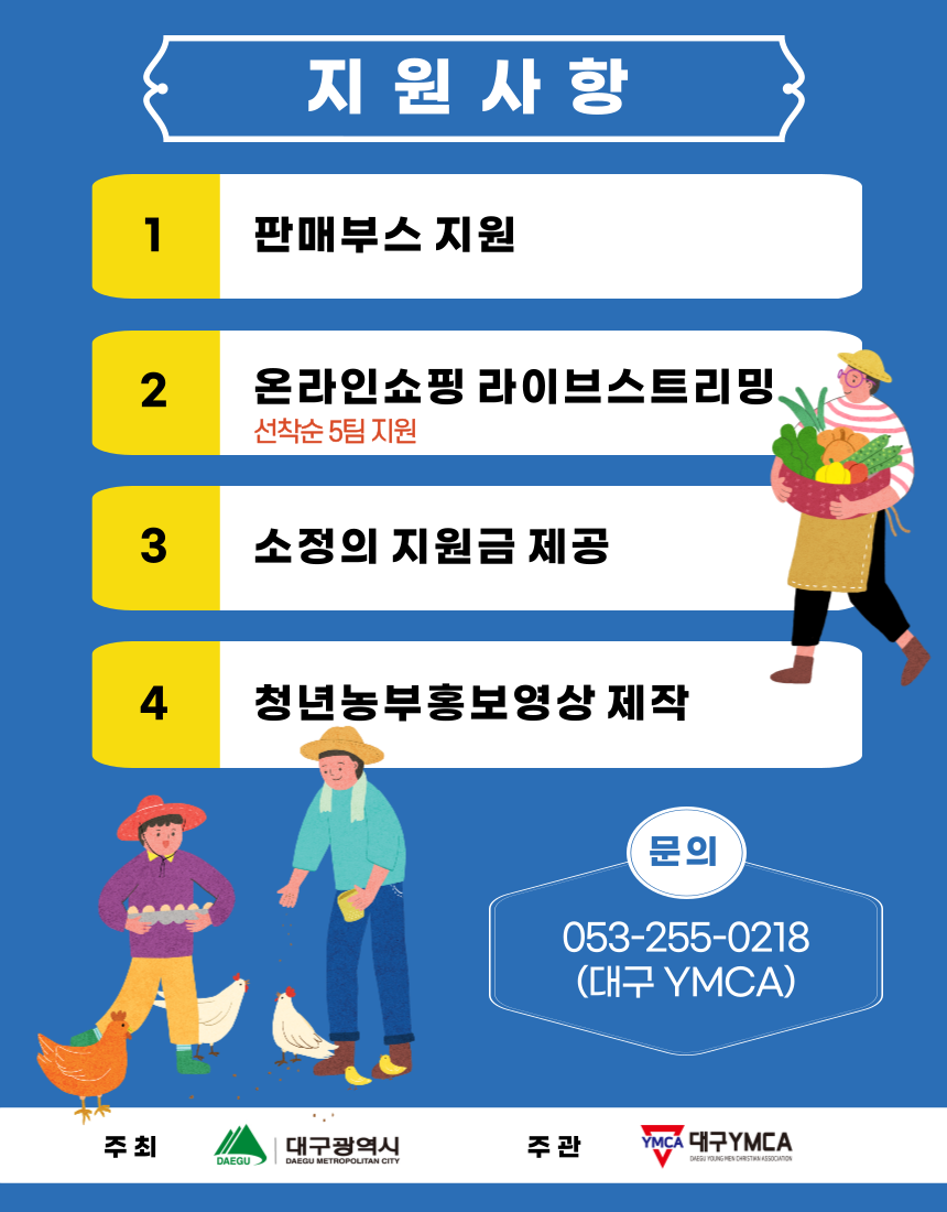 대구YMCA에서는 대구경북의 청년농부를 지원하기 위해 <대구경북청년농부상생협력사업>를 진행합니다.