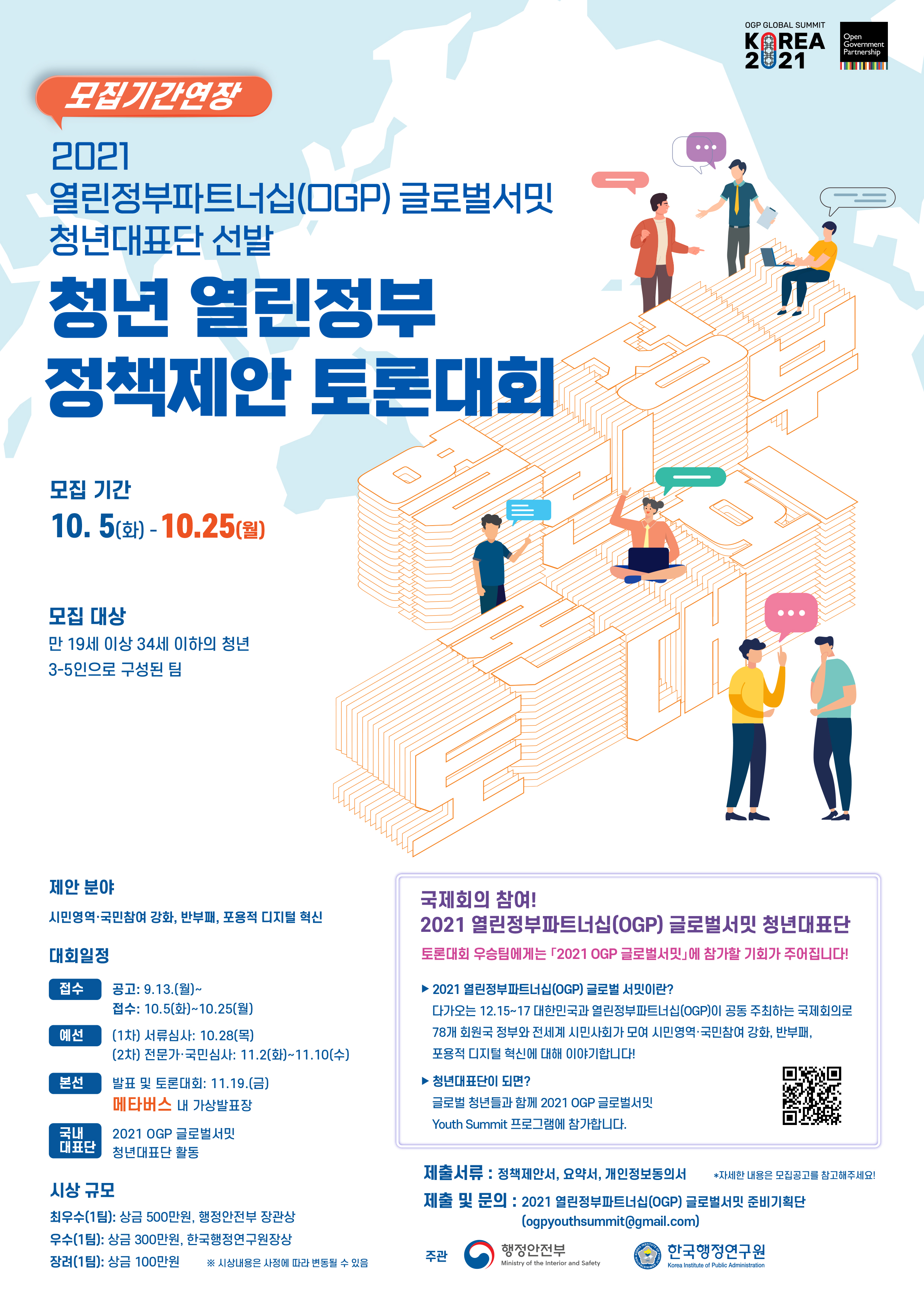 행정안전부 <2021 OGP 글로벌서밋 청년 열린정부 정책제안 토론대회> 참여 안내