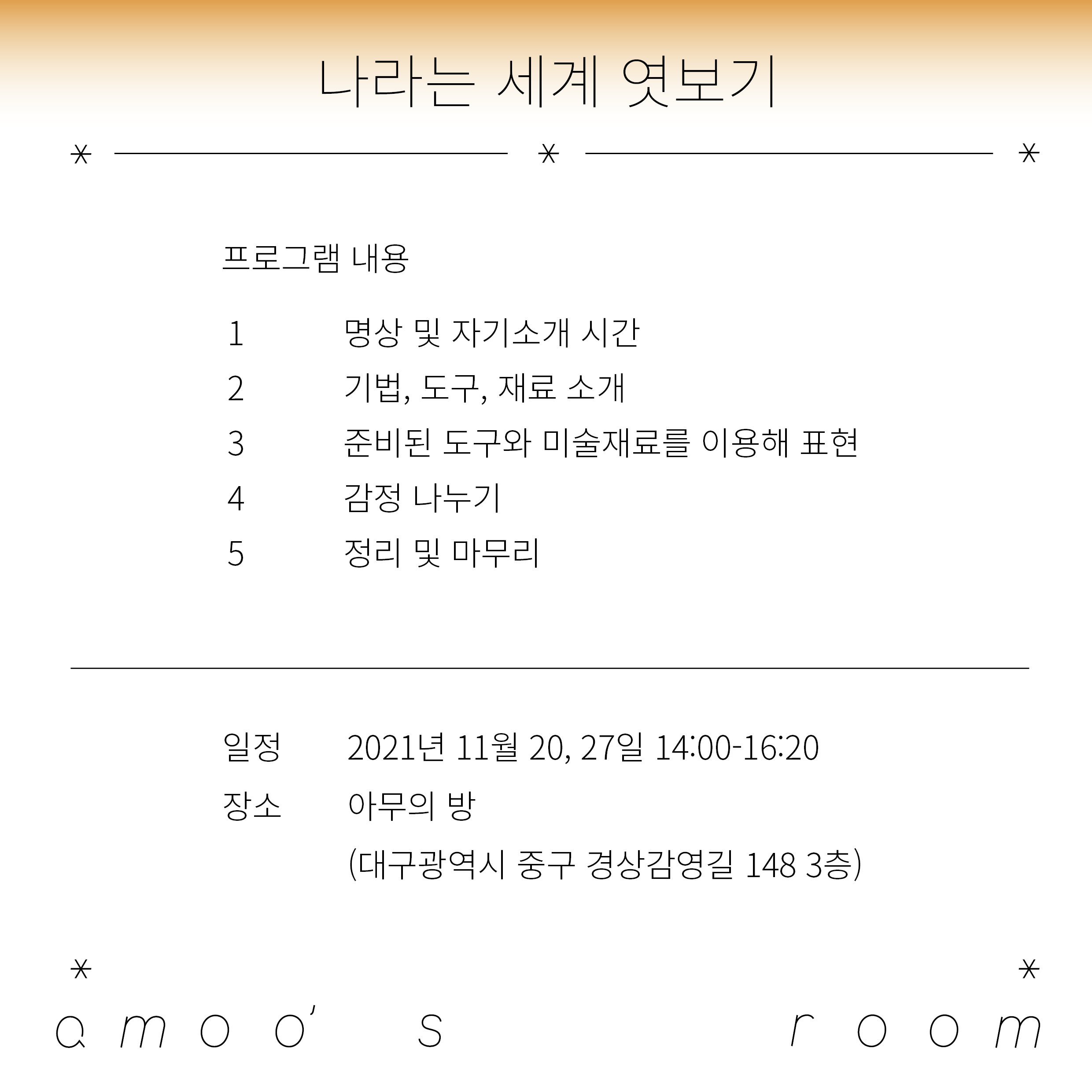 장소 : 문화향유공간 아무의 방(대구광역시 중구 경상감영길 148 3층)