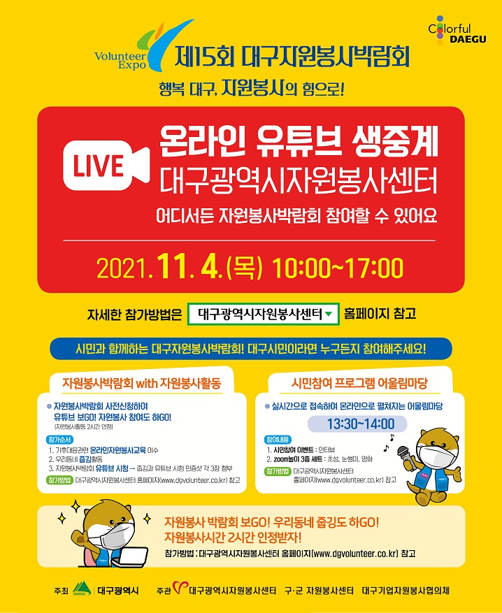 "제 15회 대구자원봉사박람회"를 개최합니다.