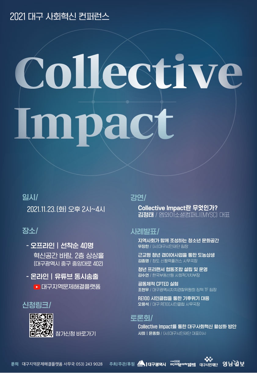 ○ 주최/주관/후원: 대구광역시, 대구지역문제해결플랫폼/ (사)대구시민재단/ 영남일보