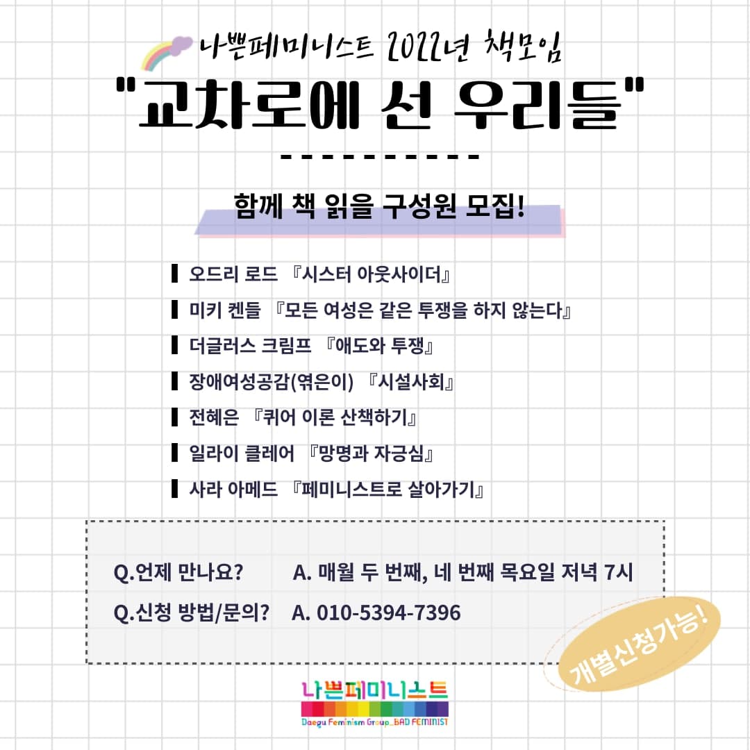 나쁜페미니스트에서는 2022년 횡단하는 페미니즘에 대해 고민하고 나누기 위해 새로운 책모임을 시작합니다.