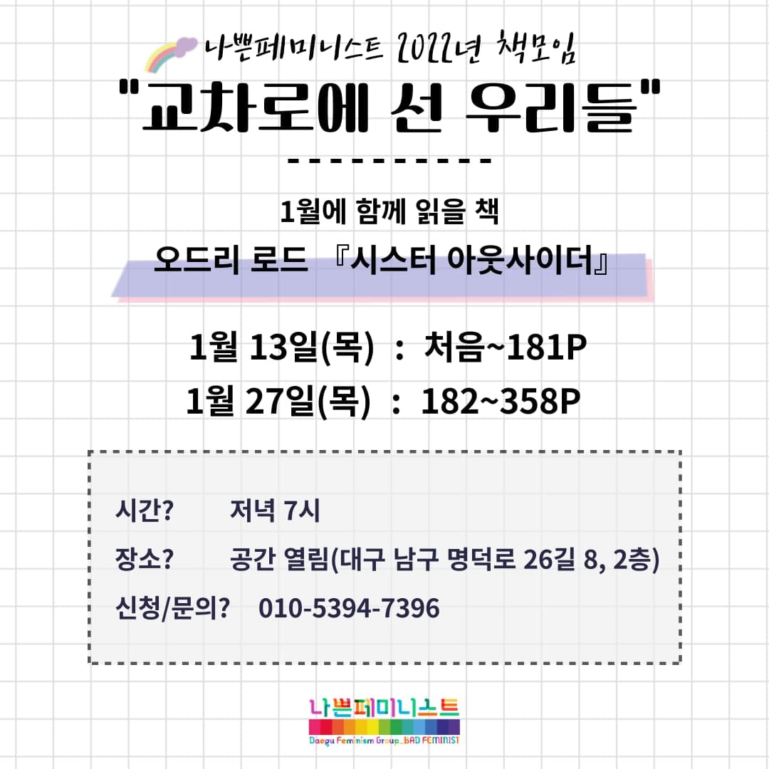 *첫 모임 시작: 2022년 1월 13일 <시스터 아웃사이더> 처음부터 181페이지까지 읽고 만나요.