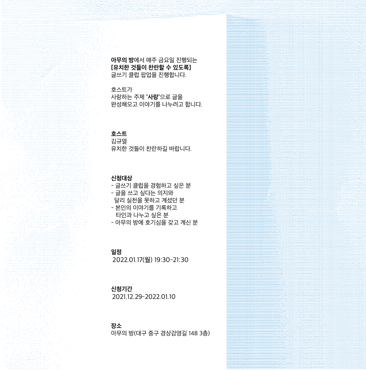 일일 글쓰기클럽 멤버 모집작성자 : 송하영 작성일 : 21-12-29