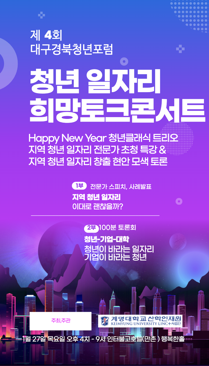 대구경북청년포럼 청년일자리 희망토크 콘서트 참가자 모집작성자 : 추현호 작성일 : 22-01-23