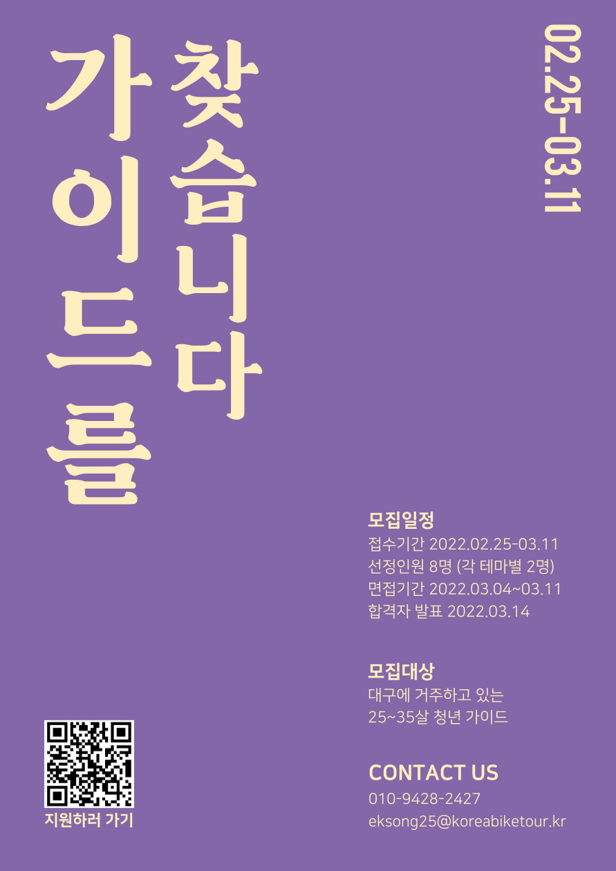 [대구관광재단X한국자전거나라] 대구인물기행 테마 투어, 가이드를 모집합니다작성자 : 송은교 작성일 : 22-03-04