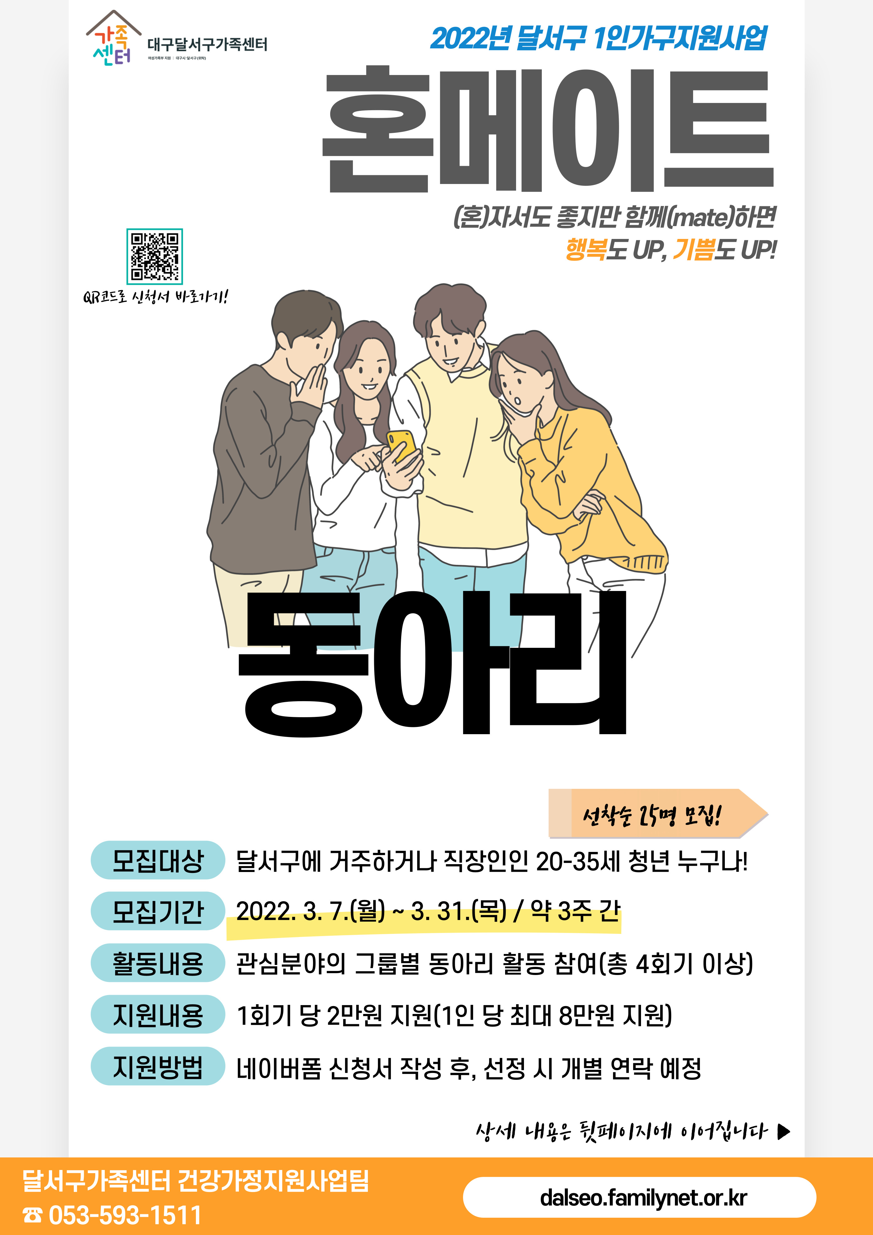 2022년 달서구가족센터 1인가구 동아리 참여자 모집작성자 : 조혜인 작성일 : 22-03-11