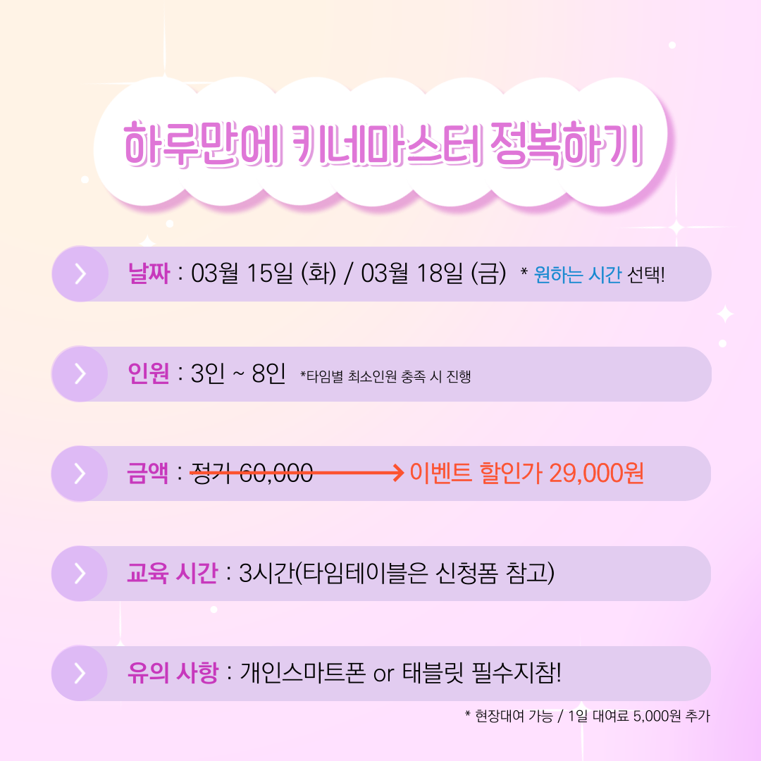 - 키네마스터 : 3월 15일(화) / 3월 18일(금)