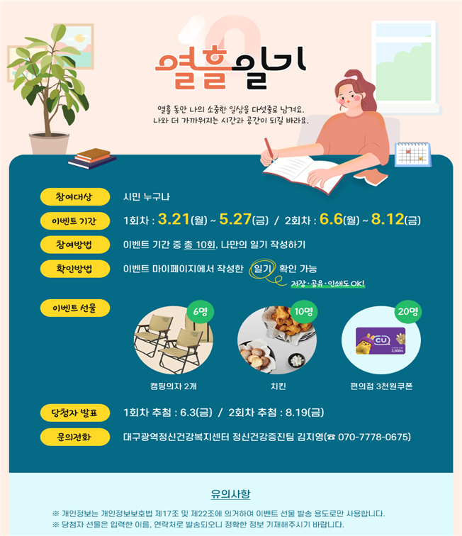 열흘일기 이벤트작성자 : 대구광역정신건강복지센터/대구광역자살예방센터 작성일 : 22-03-23