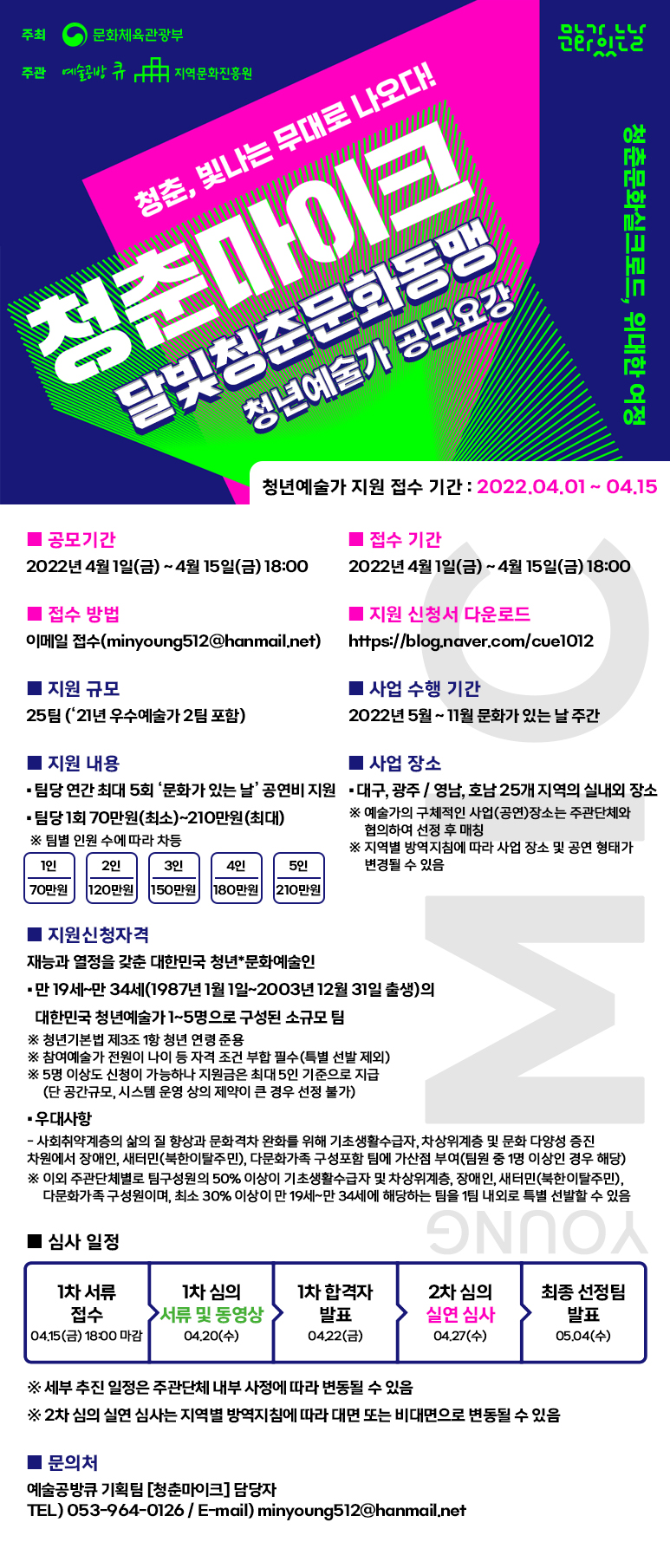 ■ 문의처 : 예술공방큐 기획팀 [청춘마이크] 담당자