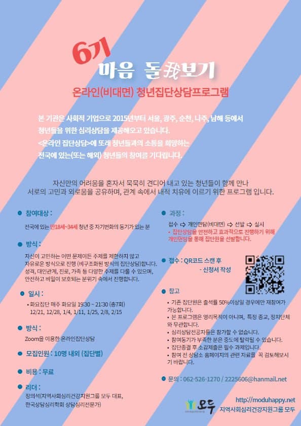<마음돌아보기 6기> 온라인(비대면) 참가자를 모집합니다:)작성자 : 젊프 작성일 : 22-04-05