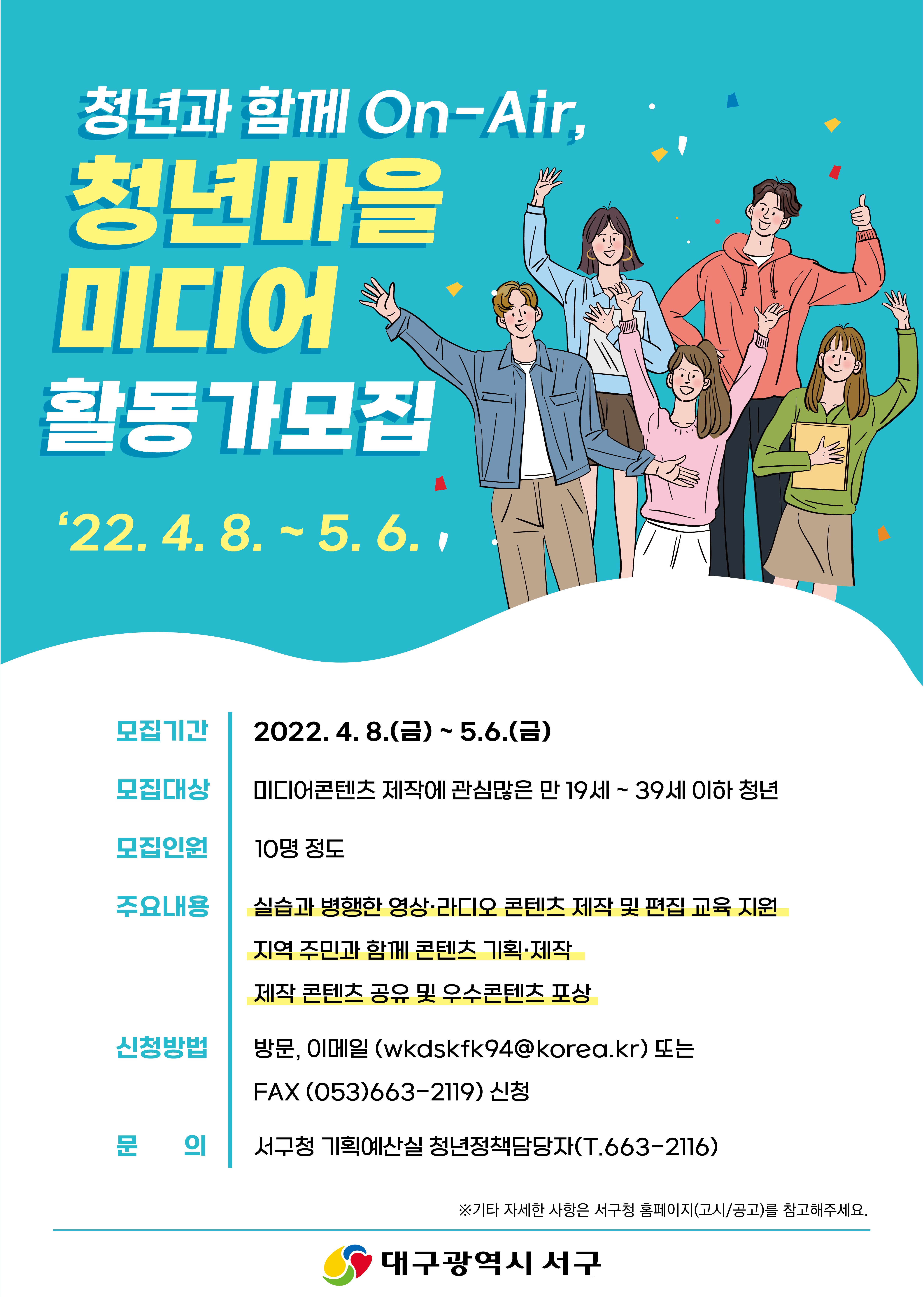 대구 서구에서 「청년마을미디어 활동가」를 모집합니다.