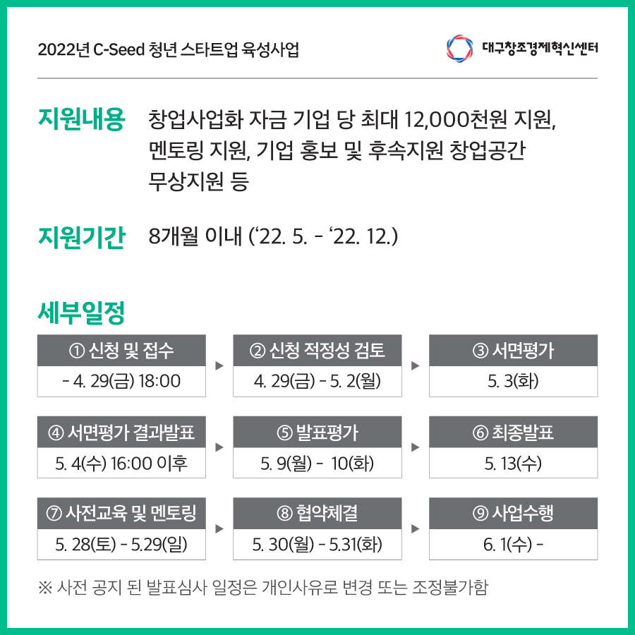 C-Seed 육성프로그램 참여기업모집작성자 : 석현지 작성일 : 22-04-15
