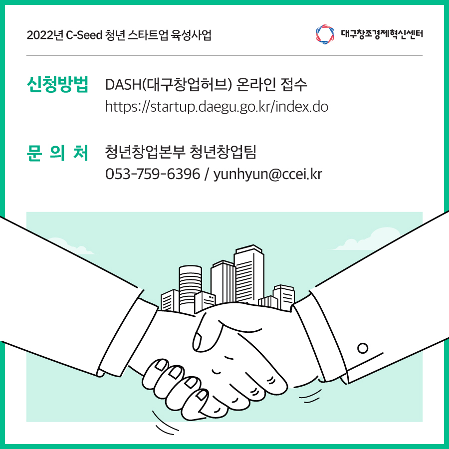 문 의 처 청년창업본부 청년창업팀 ☎️053-759-6396 / 💌yunhyun@ccei.kr