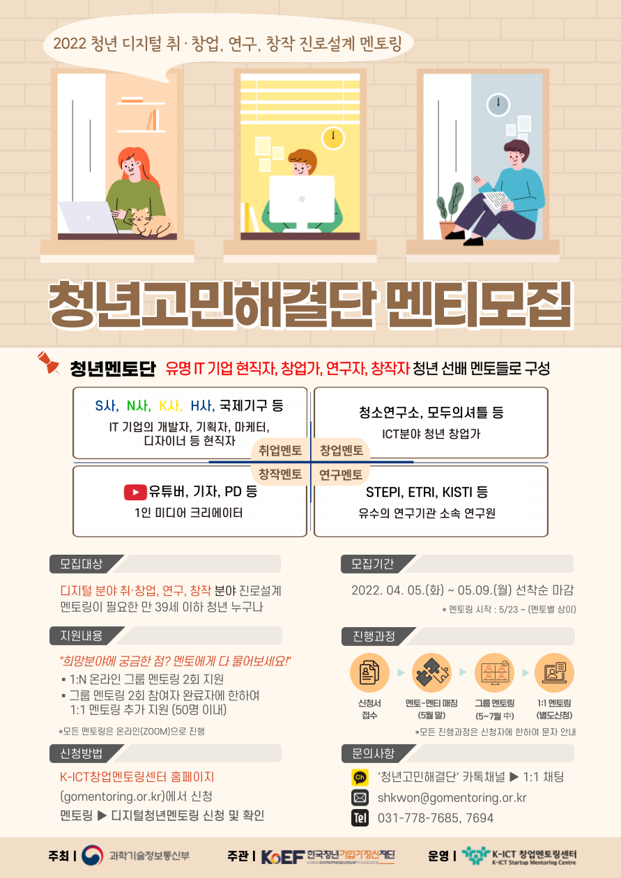[과학기술정보통신부] 디지털 청년고민해결단 온라민 진로 멘토링 멘티 모집작성자 : 박지민 작성일 : 22-04-18