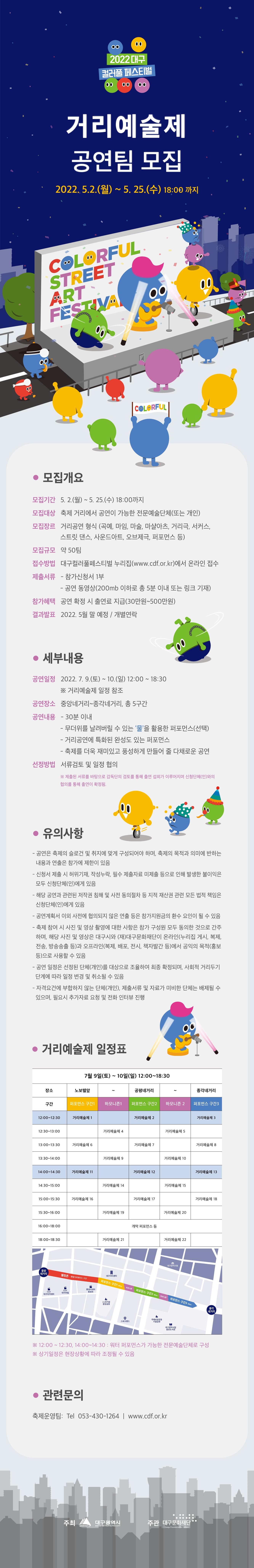 2022 대구 컬러풀 페스티벌 '거리예술제' 공연팀 모집작성자 : 김민찬 작성일 : 22-05-09