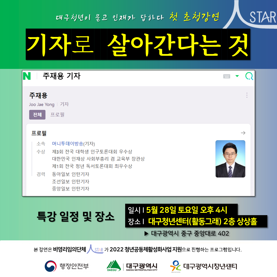 #대한민국인재상 #대구청년공동체활성화사업 #대구광역시청년센터 #대구 #기자 #언론 #많관부🙏