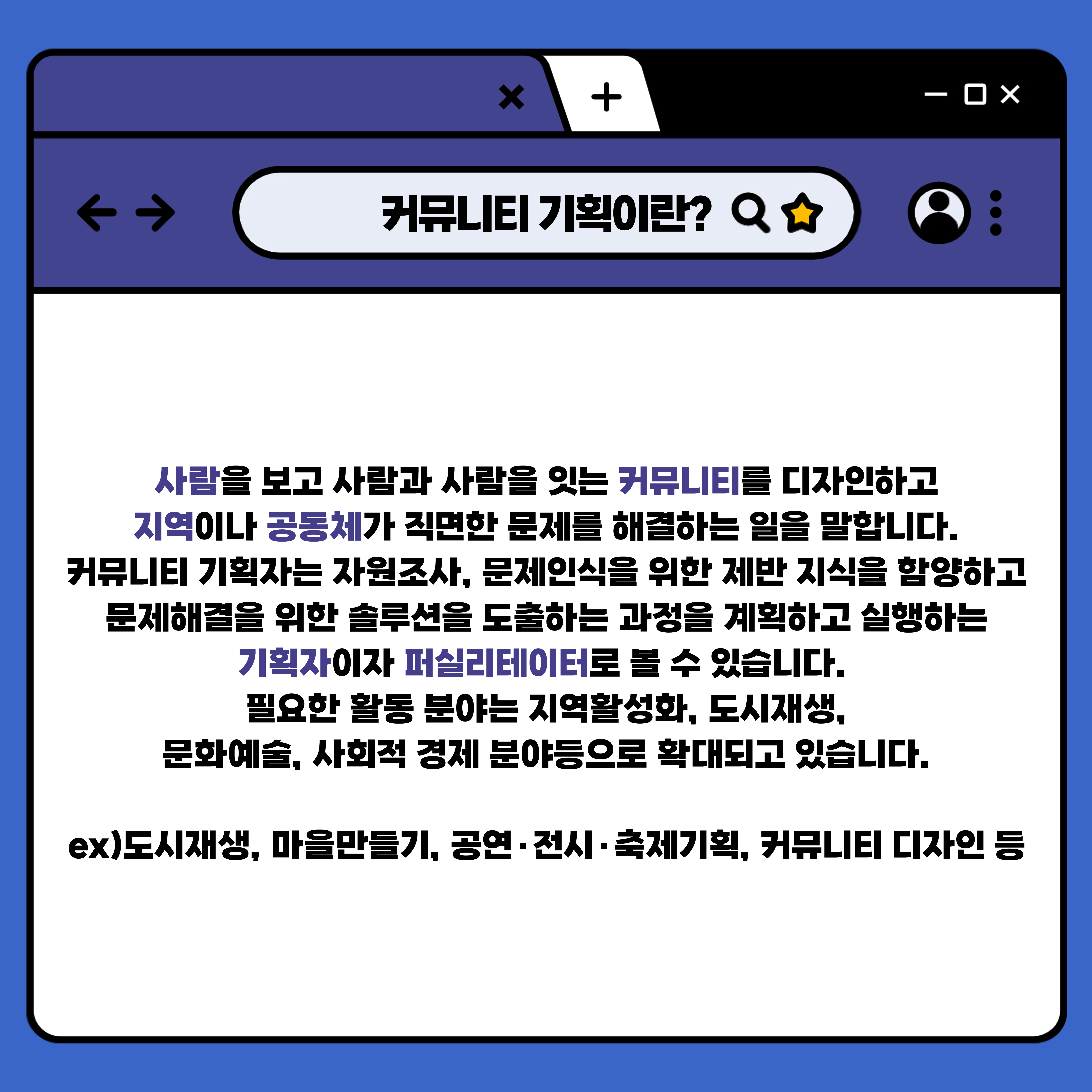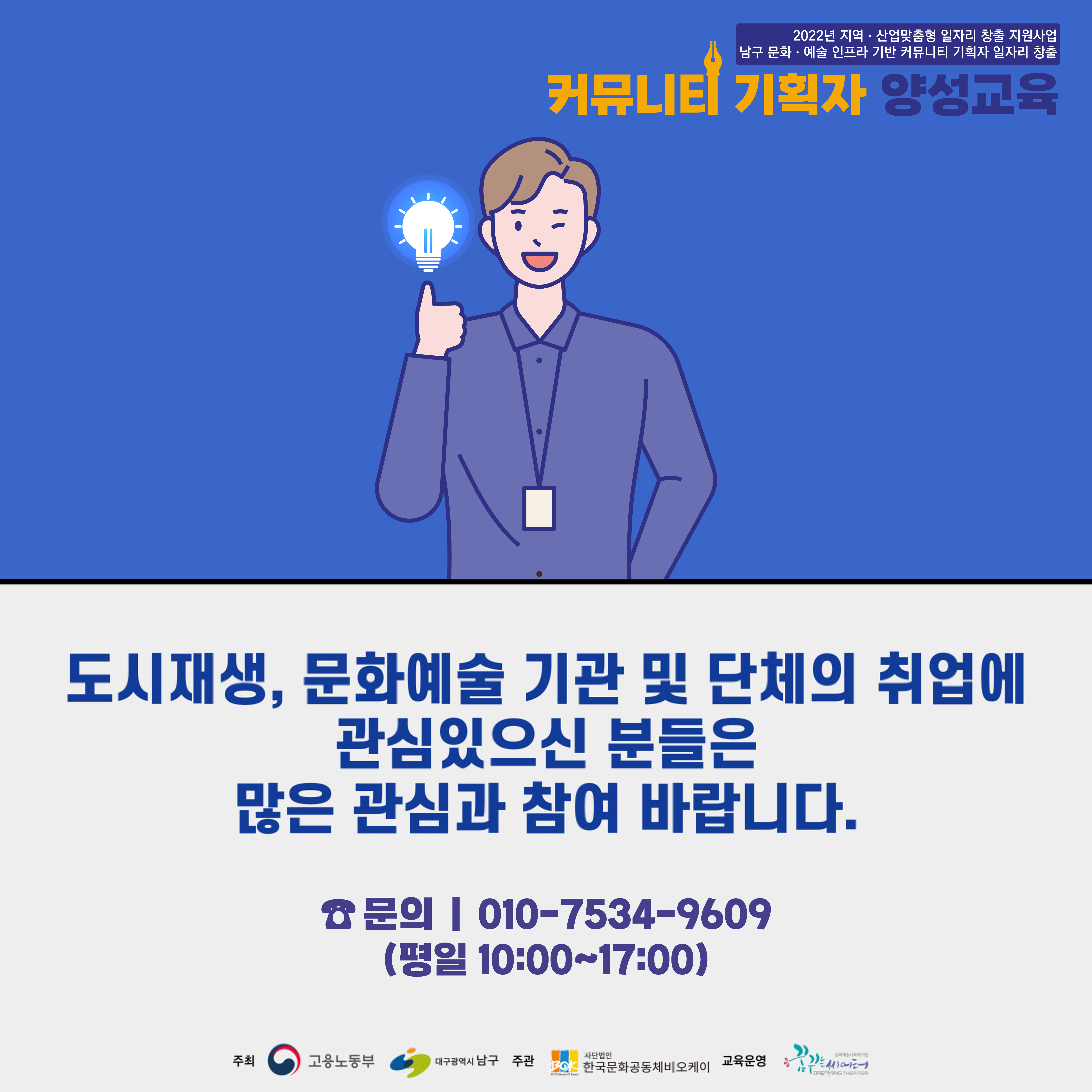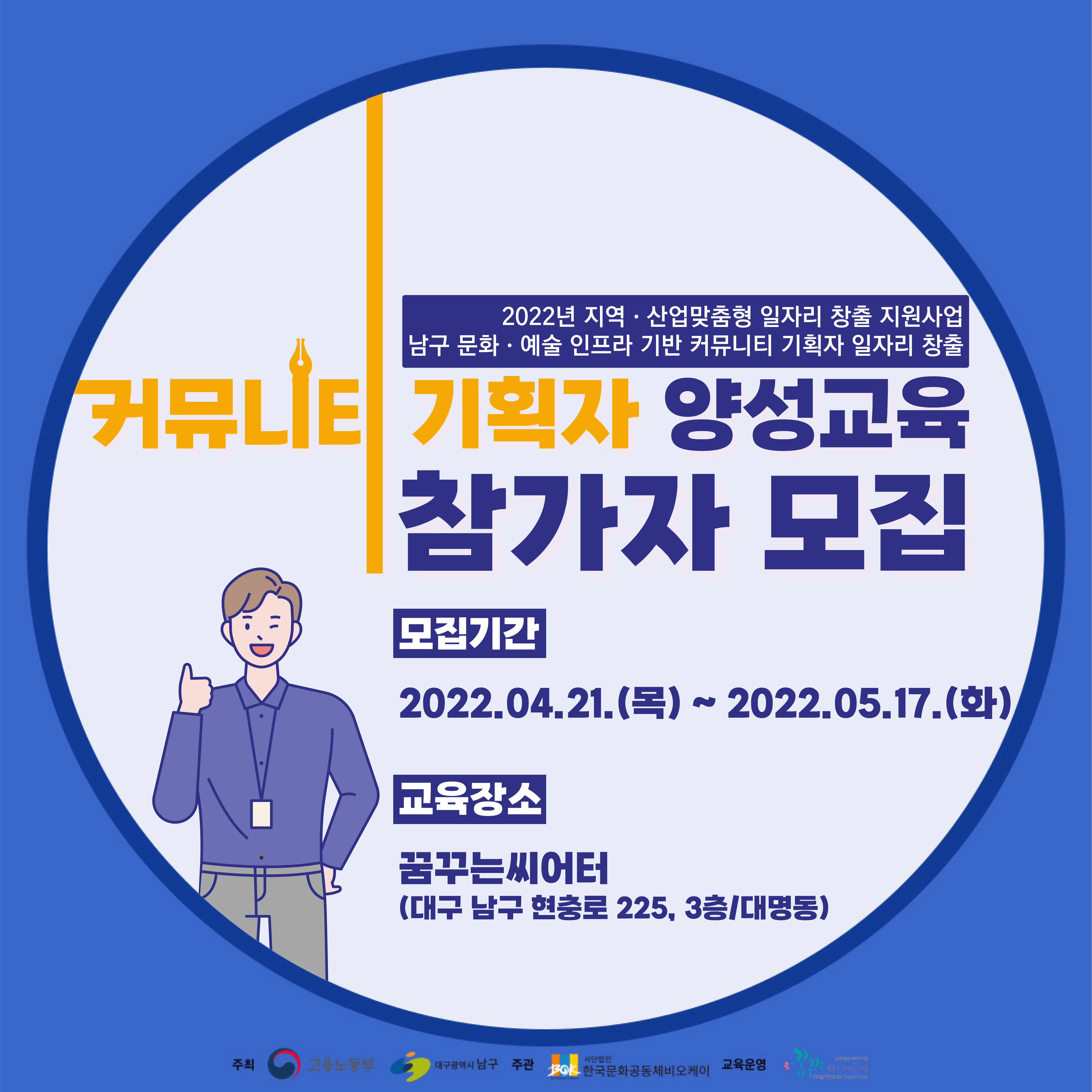 [취업연계 프로그램] 문화·예술 인프라 기반 <커뮤니티 기획자 양성교육> 참여자 모집작성자 : 최유미 작성일 : 22-05-13