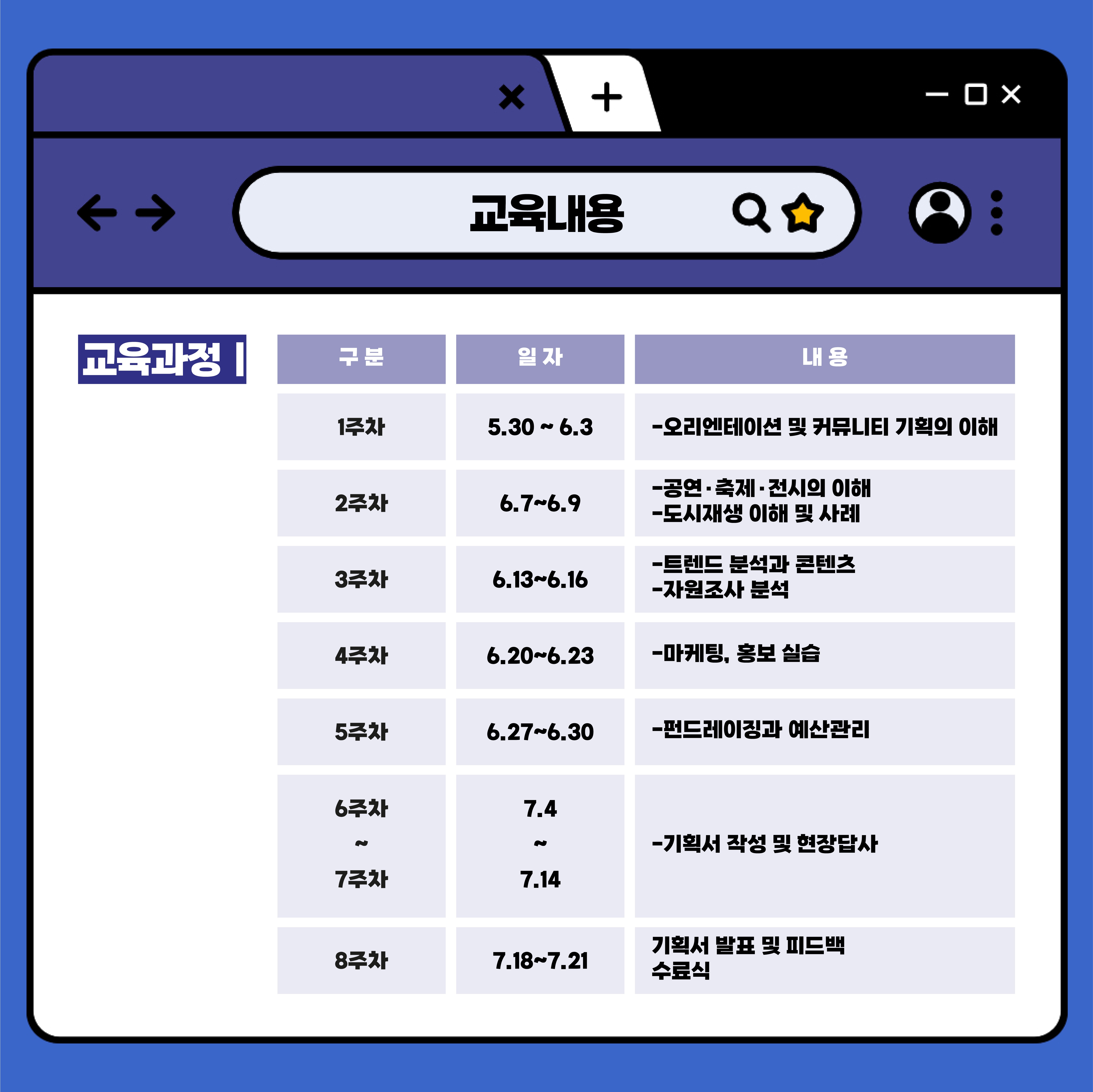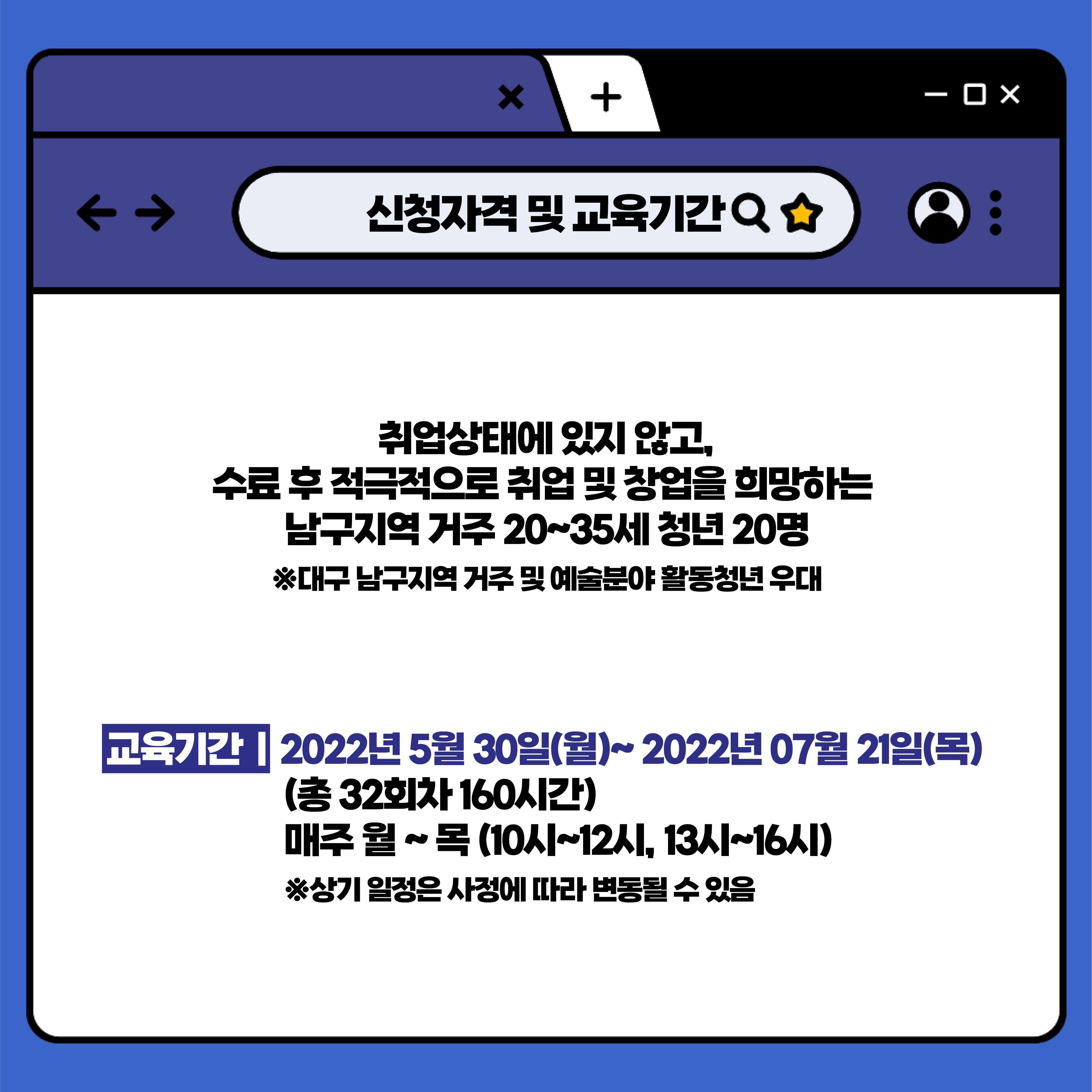 5월 30일(월) ~ 7월 21일(목) (총 32회 차 160시간)