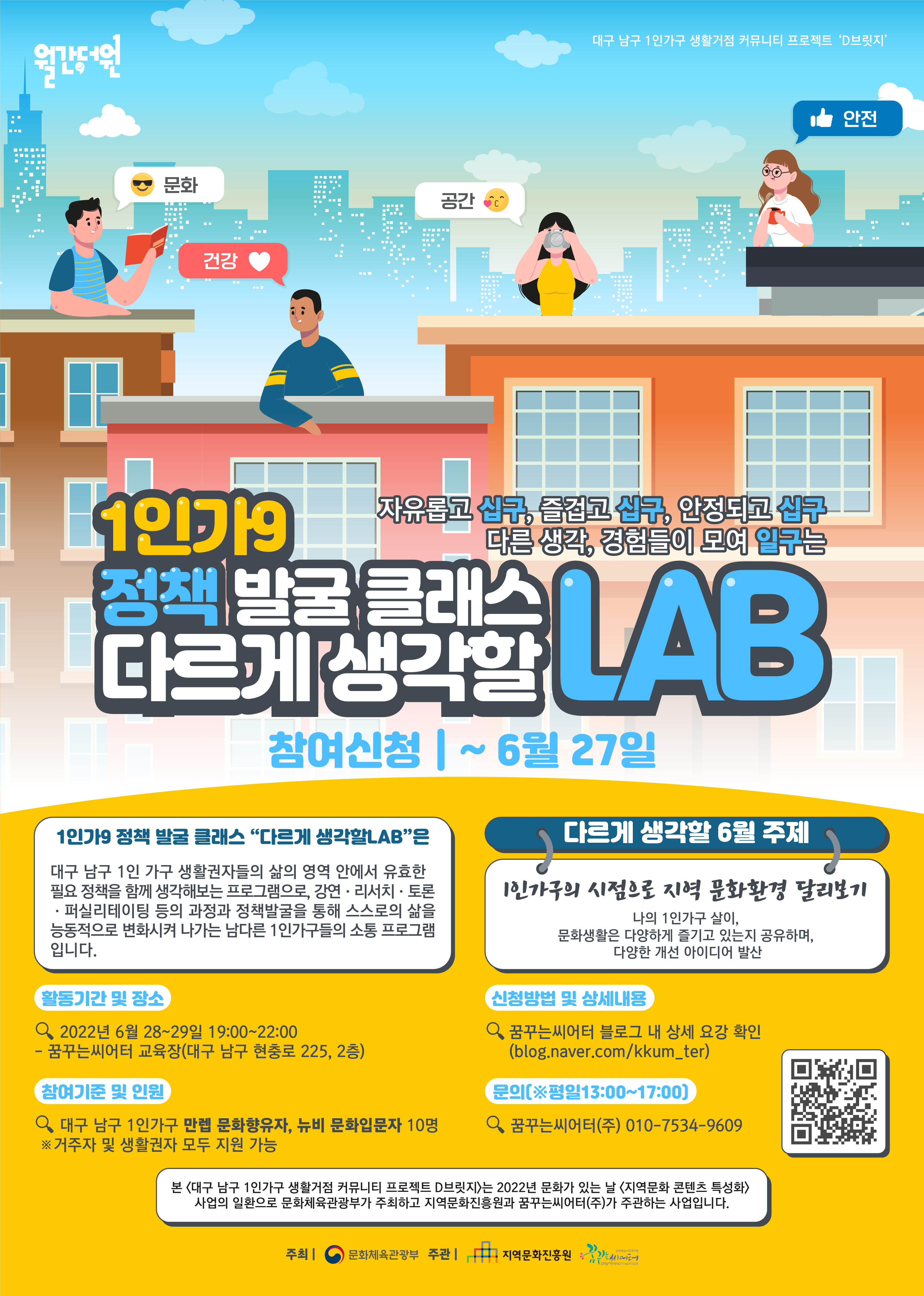#대구, #꿈꾸는씨어터, #1인가구, #정책, #정책제안, #남구, #1인가구정책제안, #발굴, #도출, #뉴비, #만렙, #문화체육관과부, #지역문화진흥원, #참가, #참여, #모집 #갓생