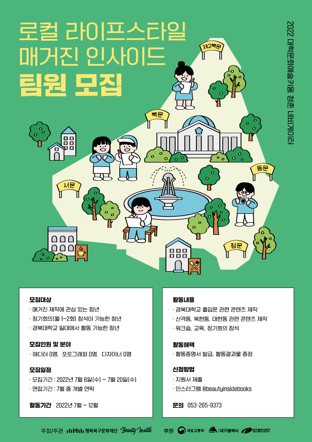 로컬라이프스타일 매거진 인사이드 팀원 모집작성자 : 지민준 작성일 : 22-07-07