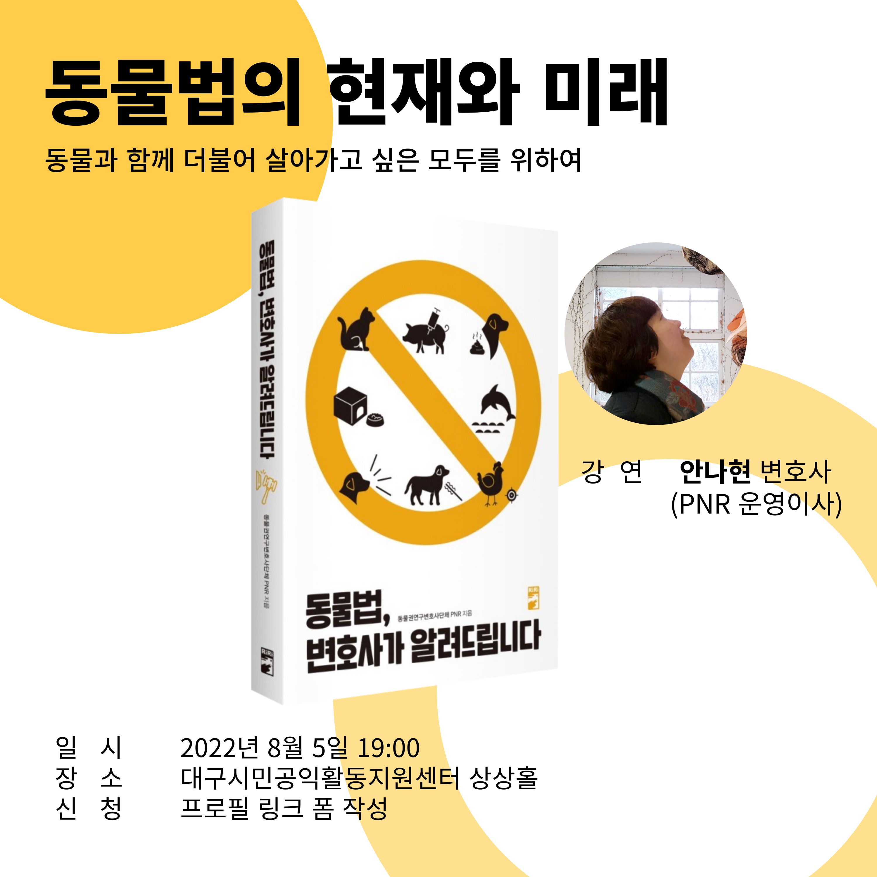 * 참석하시는 분들 중 추첨을 통해 <동물법, 변호사가 알려드립니다>를 증정합니다.