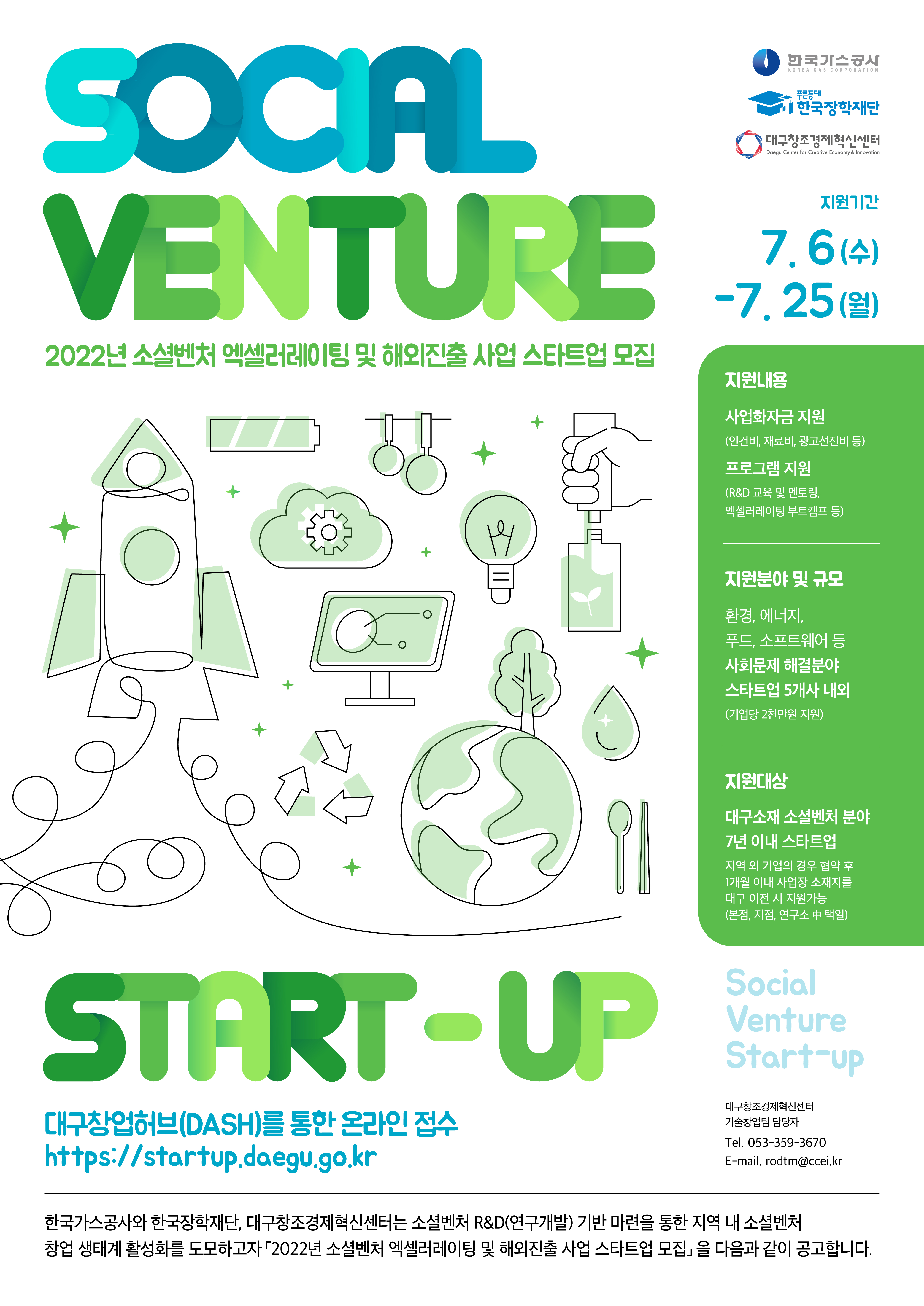 지역 내 소셜벤처 창업 생태계 활성화를 도모하고자 7월 6일(수)부터 7월 25일(월) 18:00까지
