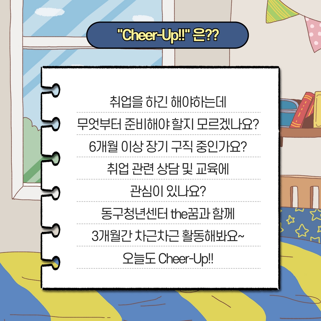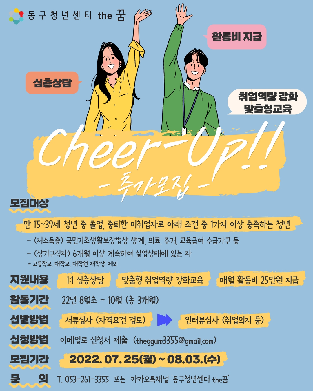 취업 취약청년층 발굴지원 'Cheer-Up!!' 참가자 추가모집작성자 : 박소진 작성일 : 22-07-29