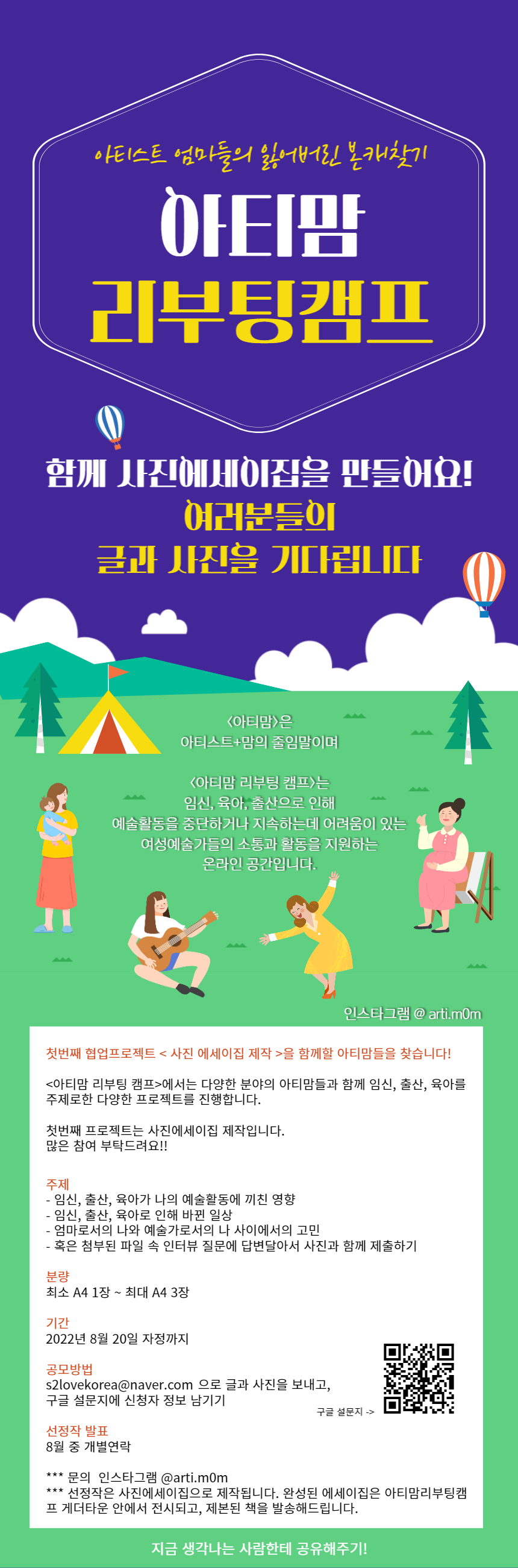 [아티맘리부팅캠프] 사진에세이 제작 협업프로젝트 참여자 모집작성자 : 김현미 작성일 : 22-08-04