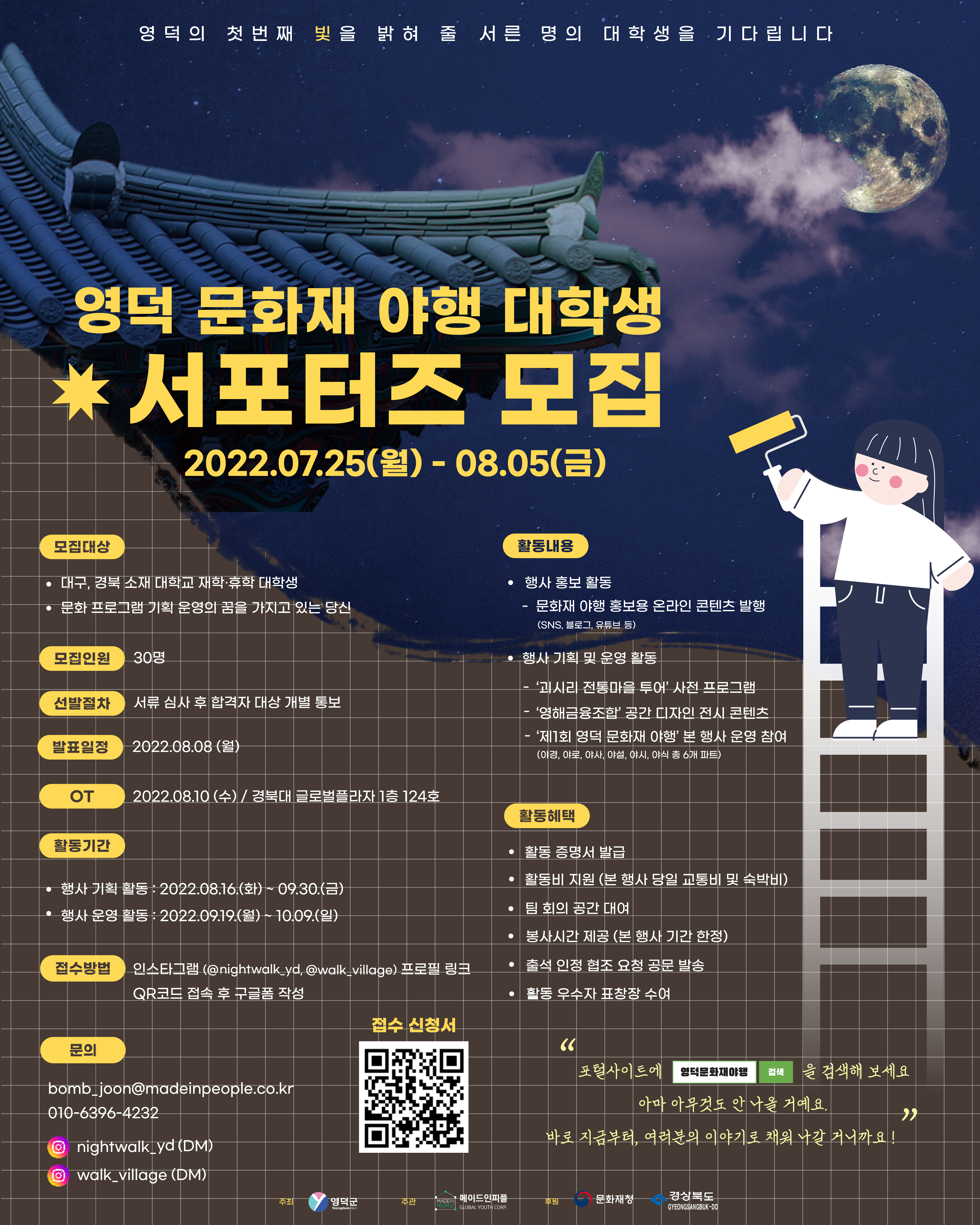 영덕 문화재 야행 서포터즈 모집작성자 : 나유진 작성일 : 22-08-04