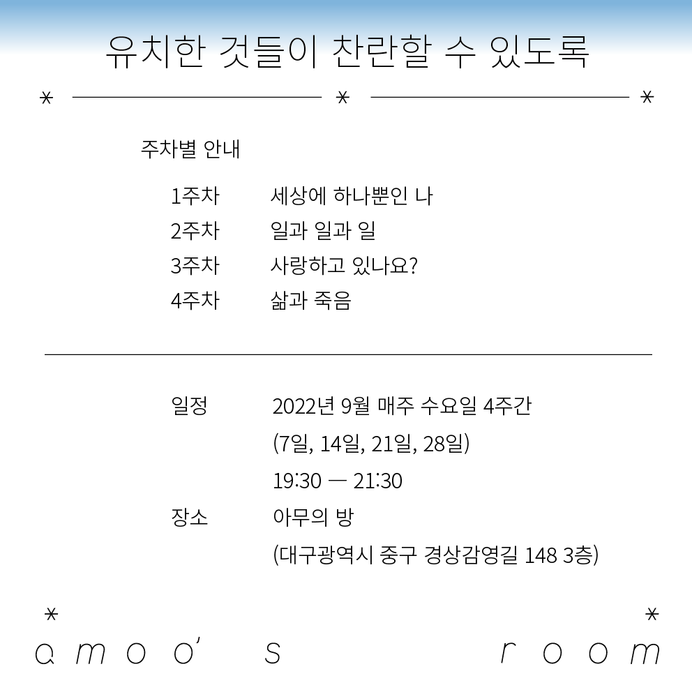 9월 /유치한 것들이 찬란할 수 있도록/ 글쓰기 클럽작성자 : 송하영 작성일 : 22-08-21