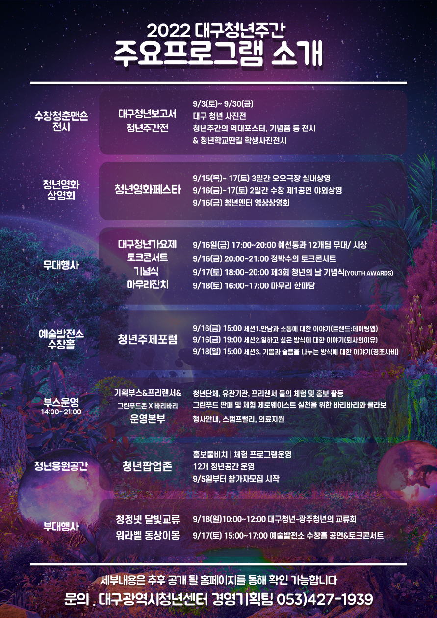 2022 대구청년주간 HAPPY YOUTH DAY 포스터 공개작성자 : 젊프 작성일 : 22-08-23