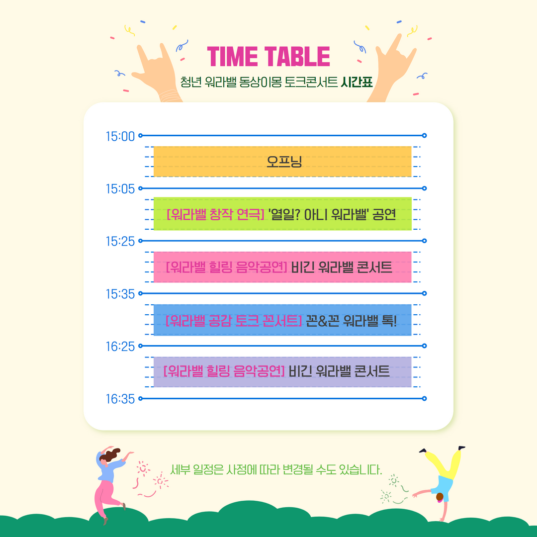 지역 청년이 일과 생활 균형의 주체가 되는 창작 연극공연과 토론 활동을 통해 청년이 생각하는 워라밸에 대해서 공유하는 시간을 가져보자구요🙋♀️