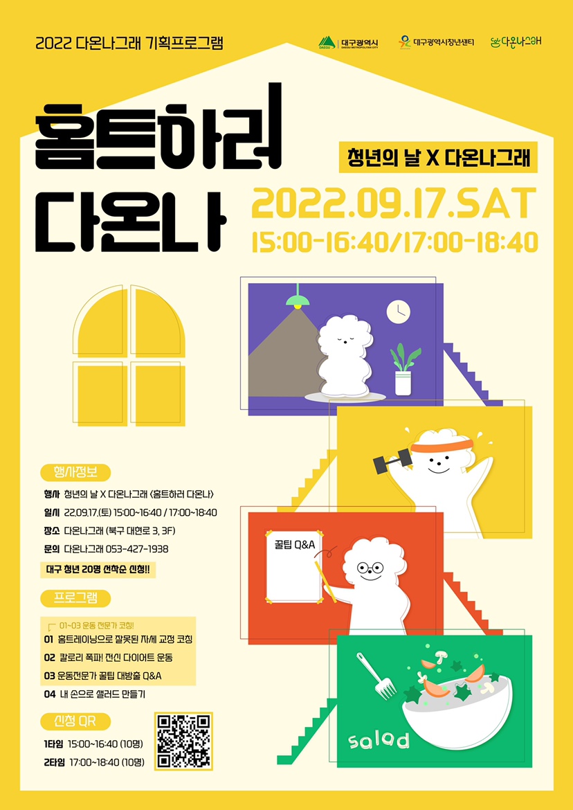 2022 청년의 날 X 다온나그래 기획프로그램 <홈트하러 다온나>작성자 : 대구청년센터 작성일 : 22-09-05 대구광역시청년센터